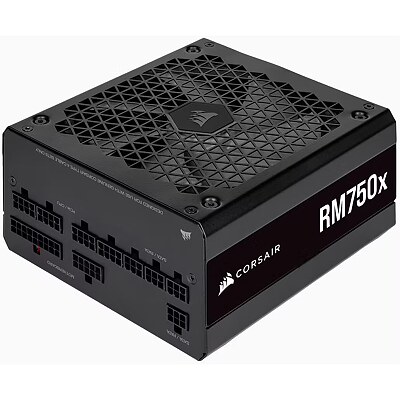 This Corsair brand power supply unit has an 80 PLUS Gold energy efficiency certificate and a power output of 750W.