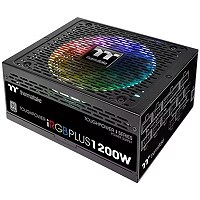This Thermaltake brand power supply unit has an 80 PLUS Gold energy efficiency certificate and a power output of 1200W.