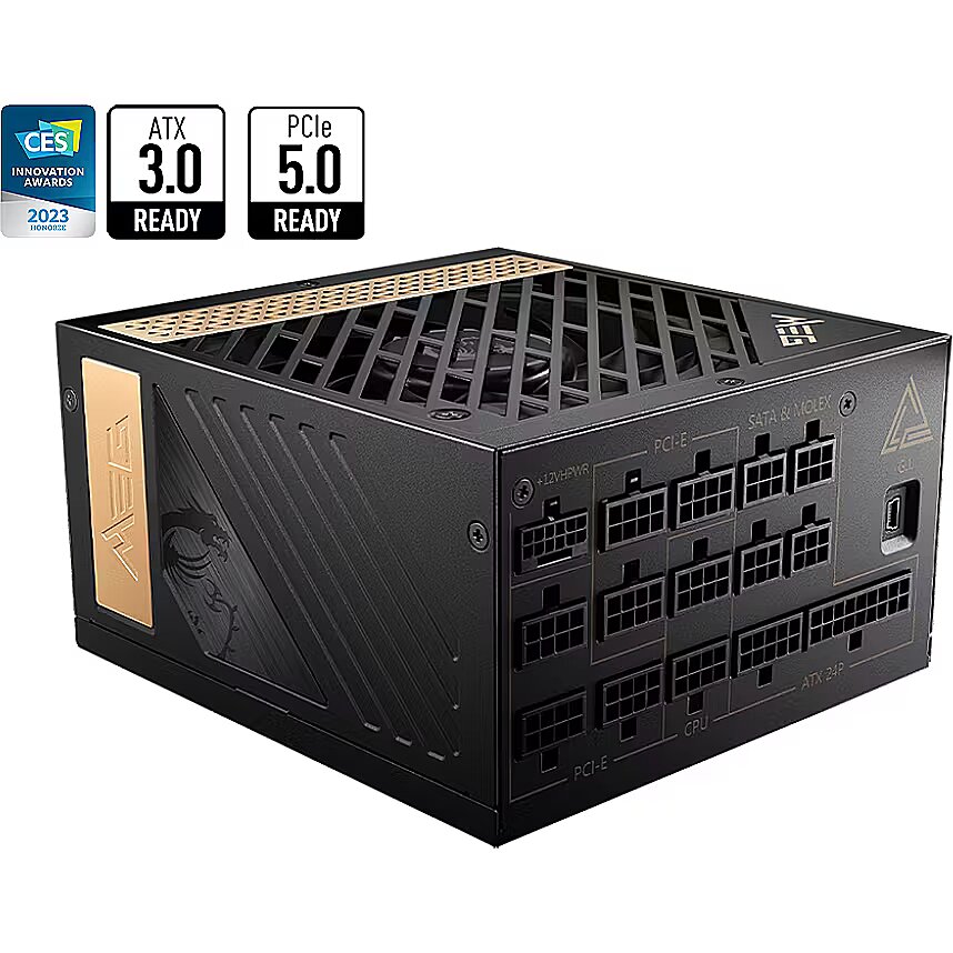 LongDesc - THE REVELATION OF LEGENDThe MEG series is revealed as a legend that represents the ultimate elegance in gaming.With the determination of transcending current gaming products, the flagship models push the limits of what an extreme gaming series can be.The mysterious triangle is a symbolic icon of MEG's infinite power, with the triangle's slope further extending the three pillars of MEG's core characteristics: legendary, loyalty, and luxurious.ATX 3.0 READYIt has an output port that is compliant with PCIe 5.0 and Intel PSDG (Power Supply Design Guide) ATX 3.0, also the power supply can hold up to 2x total power excursion and 3x GPU power excursion.LEVEL UP YOUR GAMEWith native 16 PIN PCIe connector this power supply is ready for all high performing future graphics cards. It can freely pipe up to 600W of power to PCIe 5.0 graphics cards.80 PLUS PLATINUM CERTIFIEDThe efficiency of your power supply directly influences your system’s performance and your power consumption. The 80 PLUS Platinum certification promises lower energy consumption and higher efficiency.GAMING INTELLIGENCEGaming Intelligence is dedicated to providing many unique and useful features to improve the gamer's experience.REAL-TIME MONITORThrough the MSI Center, this power supply help monitors the real-time status of the percentage of power supply to GPU and CPU and the total system wattage used.MULTI/SINGLE RAIL SWITCHIt can switch between single and multi-rail according to the needs of users while taking into account high current output and safety protection.GPU SUPPORT FOR ALLThe power supply can support the NVIDIA and AMD graphics cards. Prepared for the highest of requirements, the MEG power supply’s IO supports can support different and versatile ways of connection according to the power connector design of different graphics cards.JAPANESE CAPACITORSAiming for unwavering product quality and performance stability, the power supply comes with 100% Japanese 105° C capacitors and solid capacitors.COMPACT SIZINGCompared with the general platinum power supply on the market. The power supply’s 160mm-long and 150mm-wide dimensions ensure a comfortable and easy fit in most PC cases, effectively providing more space for cable management and airflow to the rest of the system.COMPACT SIZINGCompared with the general platinum power supply on the market. The power supply’s 160mm-long and 150mm-wide dimensions ensure a comfortable and easy fit in most PC cases, effectively providing more space for cable management and airflow to the rest of the system.USE WHAT YOU NEEDThe power supply’s full modular design means that only the connectors required by the build need to be used, significantly reducing cable clutter and simplifying the system’s overall build.CABLE MANAGERComes with cable manager in two sizes ( 24 pin and 8 pin ). They help you organize the cables and keep them tidy for better visuals.MAGNETIC MARKThe magnetic plates can be attached according to different installation orientation of the power supply, giving this power supply the appearances that you like. ( The yellow frame labels the place that can be adjusted. )FAN DESIGNRedefine the power supply's fan design and optimize its utility as the power supply's best operational support.LCP ( LIQUID CRYSTAL POLYMER ) FAN BLADEThe MEG SILENT GALE P12’s fan blades are constructed by LCP (liquid crystal polymer), a compound that reduces vibration while the fan is running at maximum speed and has a high strength that can withstand thermal expansion.CONCENTRATED AIRFLOWThe fan blades are also carefully crafted to maximize airflow performance, optimized at a 32-degree angle to retain 58% of the airflow.HDB ( HYDRO-DYNAMIC ) BEARINGThe HDB (hydro-dynamic) bearing effectively reduces friction noise as well as increases the fan’s life expectancy.