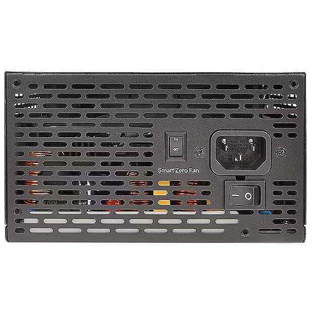 The power supply has been awarded the 80 PLUS Gold energy efficiency certificate, which provides at least 90% efficiency at 50% load. This indicates that at least 90 W out of 100 W of power drawn from the electrical grid by the power supply is delivered to the computer components, with the remaining 10 W lost as heat.
