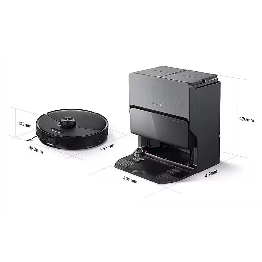 LongSummaryDescription - Roborock S8 MaxV Ultra. Dust container type: Combi, Product colour: White, Shape: Round. Dust capacity (vacuum cleaner): 0.27 L, Noise level: 67 dB, Dust capacity (base): 2.5 L. Battery technology: Lithium-Ion (Li-Ion), Battery capacity: 5200 mAh, Runtime: 180 min. Height: 103 mm, Width: 350 mm, Depth: 353 mm. Package width: 546 mm, Package depth: 485 mm, Package height: 442 mm