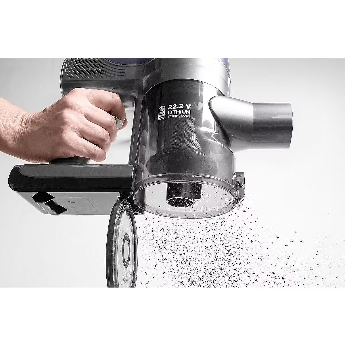 Za pomocą jednego przycisku w mgnieniu oka otrzymasz odkurzacz ręczny, który docenisz zwłaszcza przy drobnych porządkach. Dzięki praktycznym akcesoriom w postaci długiej i krótkiej ssawki szczelinowej ze szczoteczką wyczyścisz wnętrze samochodu, sofę, blat kuchenny, szuflady i inne trudno dostępne miejsca. Dzięki rurze teleskopowej możesz wygodnie odkurzyć kurz przy suficie.