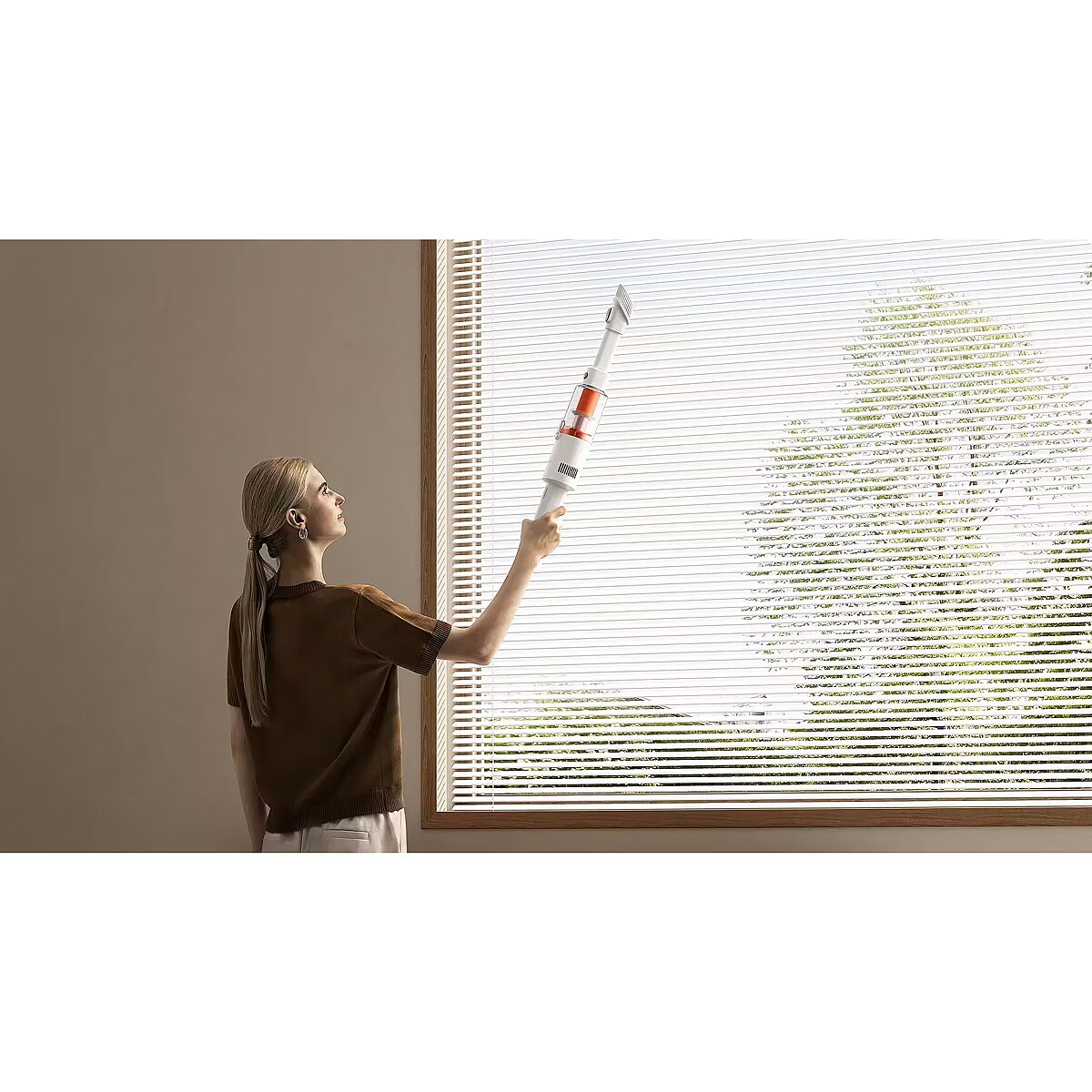 The main unit weighs only 860g. Paired with the 2-in-1 crevice brush, you can easily clean high places such as curtains or ceilings. 40min long-lasting battery
