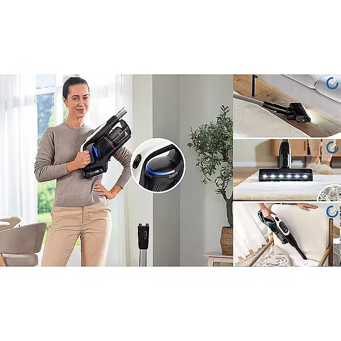 LongSummaryDescription - Bosch BCS931WBA. Product type: Stick vacuum, Dust container type: Bagless, Product colour: White. Cleaning type: Dry, Vacuum air filtering: HEPA, Dirt separating method: Filtering. Power control: Electronic. Power source: Battery, AC input voltage: 100-240 V, AC input frequency: 50/60 Hz. Package width: 790 mm, Package depth: 295 mm, Package height: 235 mm
