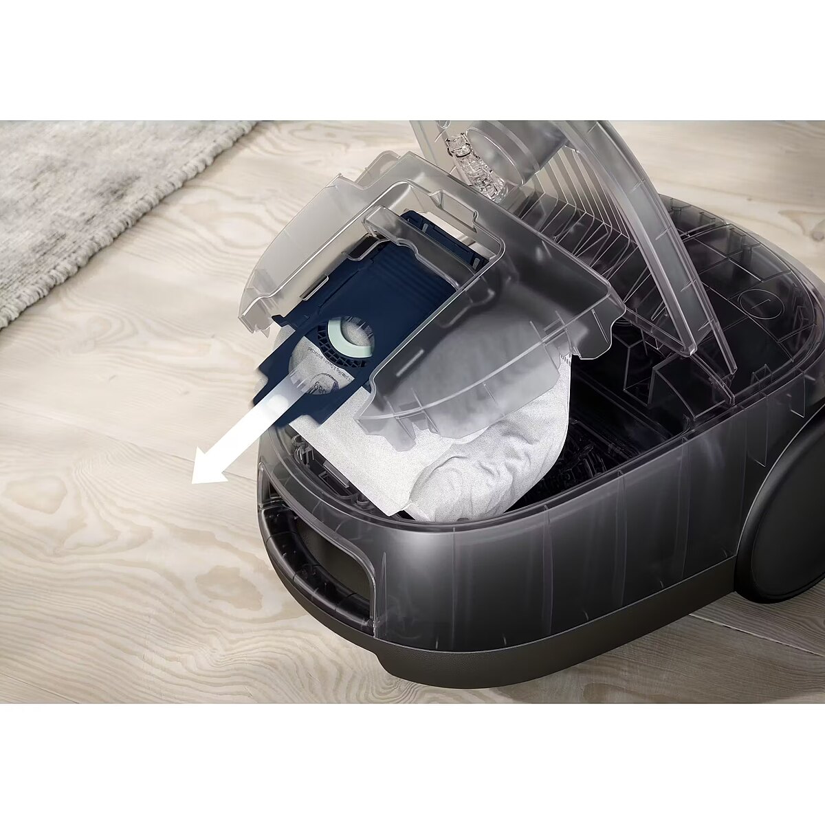 The Clean 600 bagged vacuum cleaner is equipped with a brush featuring automatic floor type detection and provides intuitive access to components - ensuring reliable performance with fewer interruptions. Internal test conducted in accordance with IEC 60312-1