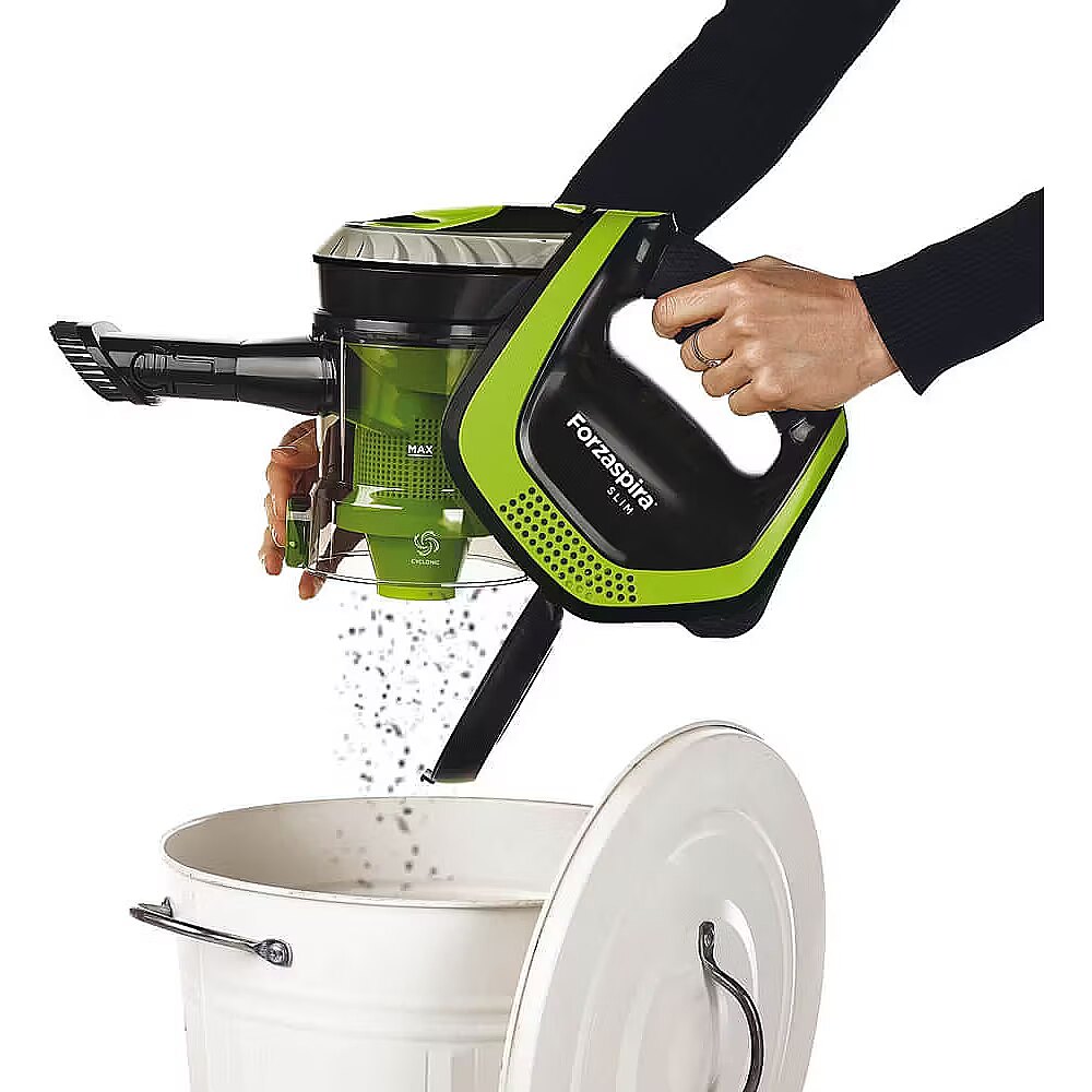LongDesc - Forzaspira Slim SR110Forzaspira Slim SR110 is the rechargeable multifunction vacuum cleaner, which turns into a handheld cleaner in one click, to eliminate dust even in the most difficult to reach areas.Lightweight and handy, it reaches anywhere; the cyclone technology and the 21.9 Volt Lithium Ion battery guarantee high performance and autonomy up to 50 minutes, for long cleaning sessions without interruptions.Equipped with a motorized brush with LED lights, it helps you to find even the most hidden dirt, cleaning all floors in the house, including carpets and rugs.The power is adjustable to two speeds to effectively clean all the surfaces of the house; the three filtration stages, including the HEPA filter, guarantee optimal performance and cleaner air.The kit for cleaning small surfaces ensures effective cleaning of furniture, shelves and bookcases, but also upholstery and car interiors.FOR CLEANING FROM THE FLOOR TO THE CEILING!Forzaspira SLIM SR110 is a light and versatile cordless vacuum cleaner that effectively cleans floors and carpets but also furniture, small surfaces and even ceilings. In a few simple steps it can be transformed into a portable cleaner, or to a vacuum cleaner with extension to clean even the most distant points such as ceilings or tall shelves.PORTABLE: CLEAN ANYWHERE IN A FLASHForzaspira SLIM SR110 can be converted in a click into a practical and lightweight portable vacuum cleaner: just connect the lance accessory or the nozzle with nylon bristles to clean in the blink of an eye even the most difficult to reach spaces such as shelves, drawers, wardrobes but also upholstery and car interiors.CLEAN AIR WITH THE HEPA FILTERThe cyclonic action of the motor, combined with three filtration stages guarantees high performance and cleaner air: the different filtering stages trap even the finest particles of dirt. The Hepa 10 filter is removable and washable, while the collection bucket empties with a simple click, for a quick and easy cleaning of the appliance.MOTORIZED BRUSH AND LED LIGHTS: THE IDEAL SOLUTION FOR HIDDEN DIRTLED lights on the brush help detect hidden dirt, for even more effective cleaning. The motorized brush of FORZASPIRA SLIM SR110 with its mechanical action removes even the most difficult dirt, for maximum performance on all floors, including carpets and rugs.LIGHTWEIGHT AND HANDYForzaspira SLIM SR110 has an ergonomic handle particularly comfortable and manageable even during long cleaning sessions; it's wireless and lightweight at only 2.6 kg, so you can clean everywhere with minimal effort. Once the cleaning session is finished, it can be easily fixed to its wall support so it's always to hand for quick cleaning.REMOVE THE DUST EVEN FROM SMALL SURFACESThe kit for cleaning small surfaces is ideal to thoroughly clean even in the most difficult to reach spaces: the lance is perfect for sofas, upholstery and car interiors, while the nozzle equipped with nylon bristles is ideal to remove dust even from bookcases and wardrobes.BAGLESS, SIMPLE TO EMPTYForzaspira SLIM SR110 is bagless and this makes it easy and quick to clean: you just need a simple click to empty the the dust bucket!ACCESSORIES FOR ALL SURFACESThe kit for cleaning small surfaces is ideal to thoroughly clean even in the most difficult to reach spaces: the lance is perfect for sofas, upholstery and car interiors, while the nozzle equipped with nylon bristles is ideal to remove dust even from bookcases and wardrobes.FOR ALL FLOORSForzaspira SLIM SR110 is equipped with a universal brush specially designed to be used on all floors, from those with tiles to carpets but also on delicate surfaces such as parquet.
