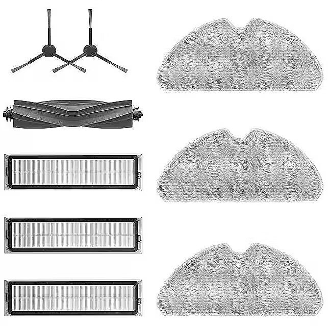 Description - 1x main brussh, 2 x side brushes, 3 x filters, 3 x mops