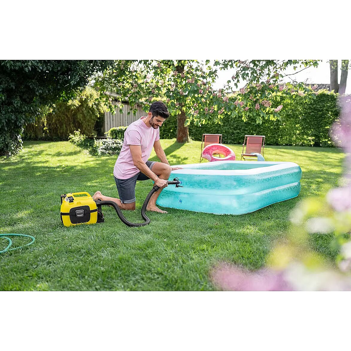 Description - Szeroki zakres zastosowań odkurzaczy uniwersalnych Kärcher Home & Garden dodatkowo rozszerza zestaw adaptera do dmuchawy. Po podłączeniu węża ssącego z użyciem funkcji dmuchawy, urządzenie bez wysiłku napompuje materace, baseny i akcesoria do pływania, a nawet dmuchane łodzie. Po podłączeniu węża do złącza ssącego urządzenia powietrze jest automatycznie odsysane, dzięki czemu żmudne ręczne wyciskanie powietrza należy już do przeszłości. Zestaw akcesoriów zawiera adapter do podłączenia do węża ssącego odkurzacza uniwersalnego oraz trzy różne rozmiary dysz (S, M i L), które są kompatybilne z zaworami w szerokiej gamie nadmuchiwanych produktów.