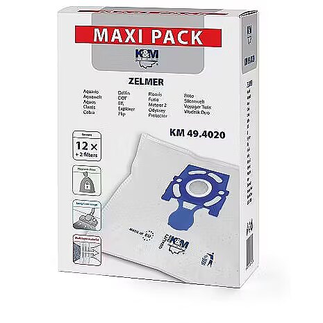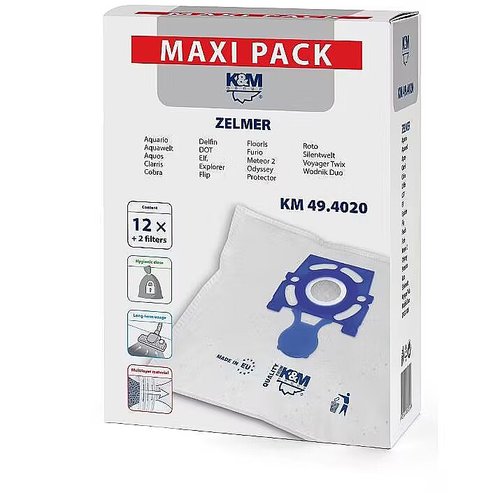 description_en - Vacuum cleaner bags for: ZELMER Manufacturer: K&M Group Type of bags - syntetic bags; pack included: 12 Suitable for: ZELMER 01Z014 SK,