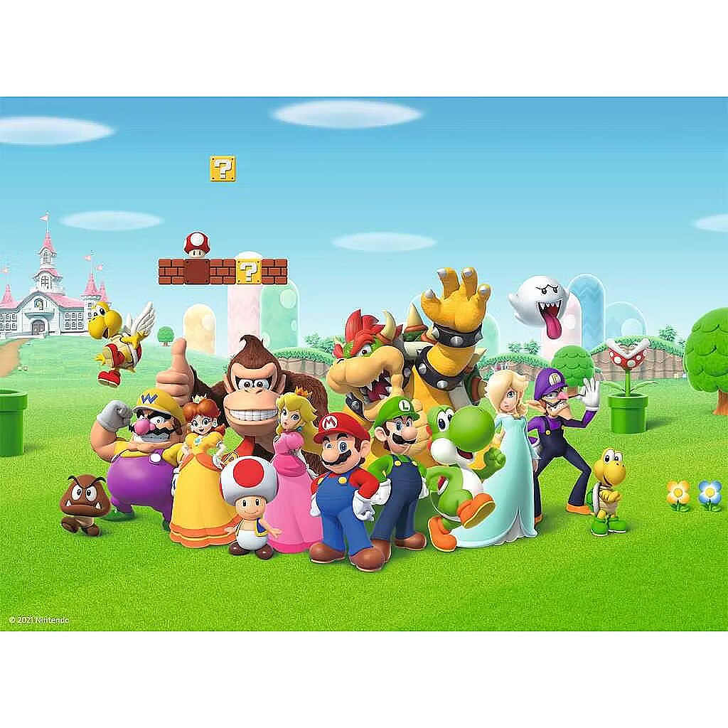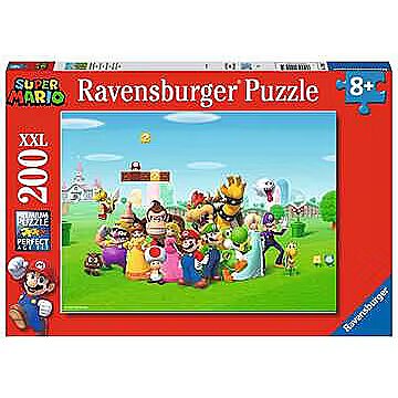 Description - Puzzle 200 pieces XXL - Super Mario Ravensburger is the world's largest manufacturer of jigsaw puzzles, which it has been producing for over 120 years. Ravensburger jigsaw puzzles have an anti-reflective coating - they are made of a patented thick cardboard with soft padding (the picture is printed on paper with a linen fibre structure, which reduces light reflection, makes it easier to put together and the picture itself, regardless of the size of the puzzle, is clearer). In addition, thanks to the patented SoftClick technology, each individual piece of the Ravensburger puzzle is uniquely shaped and only fits in one place. The puzzle shapes are varied thanks to the handmade die. Ravensburger puzzles are resistant to bending.
