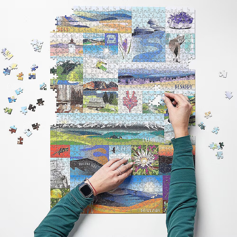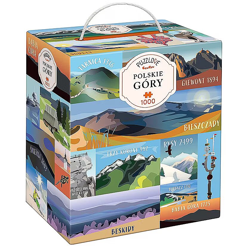 Description - Puzzlove CzuCzu Polskie góry 1000 elementów W tych puzzlach jest wszystko, co kochasz! Spokój, wypoczynek i piękny krajobraz na finiszu. Zdobądź kolejne szczyty, odkryj nowe szlaki, przypomnij sobie wszystkie zapierające dech widoki i czas spędzony w górach. Puzzlove Polskie góry to duża, przepięknie zilustrowana 1000-elementowa układanka, której ułożenie może skutkować pomysłem na kolejną wyprawę. Puzzlove Polskie góry to więcej niż 1000-elementowe puzzle. Przedstawiają wybrane szczyty pasma i detale jednoznacznie kojarzące się z czasem w polskich górach. To zaproszenie do podróży pełnej wspomnień i marzeń o kolejnych wyprawach. To sposób na relaks i wypoczynek z tymi, którzy podzielają górską pasję. Najwyższa jakość wykonania i piękno ilustracji sprawiają, że to idealny pomysł na prezent dla miłośników przyrody, wędrówek i wspinaczek. Ułożone puzzle o wymiarach 48 x 68 cm mogą stać się oryginalną ozdobą wnętrza. Pięknie prezentują się w parze razem z puzzlami Puzzlove Góry 8000 m n.p.m.