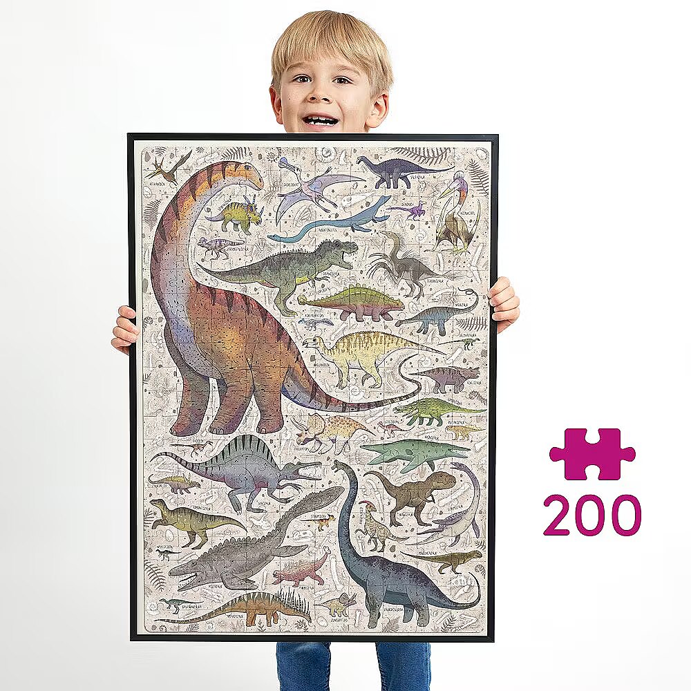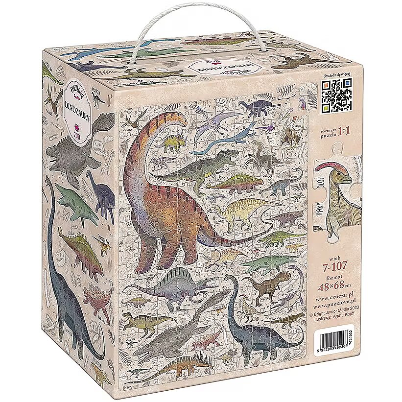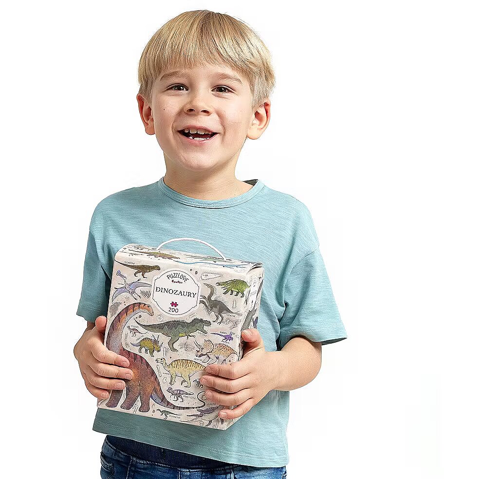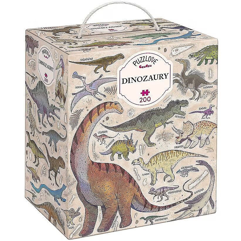 Description - Puzzle 200 pieces Puzzlove Dinosaurs Puzzlove Dinosaurs are coming your way! Hey, dinosaur lovers, palaeontologists, puzzle geeks and explorers, we have something for you! We've combined your favourite subject matter, beautiful illustrations and added loads of fun to create a beautiful jigsaw puzzle. You will find dozens of smaller and larger dinosaurs and other prehistoric reptiles from the Cretaceous period, do you know them all? Puzzlove CzuCzu will work well as a family puzzle, for older children and adults. Play as you like! Wrrr! Puzzlasaurus Rex rules! Puzzlove CzuCzu Dinosaurs have 200 pieces and the finished illustration is up to 48 x 68 cm. This is the perfect puzzle for older preschoolers and schoolchildren. It will inspire future palaeontologists and explorers to consolidate and acquire new DINO-knowledge. Stack them as you like: In your favourite company: with friends or siblings Alone At home, at school, on holidays and at digs On time or at leisure To improve patience and perseverance For the love of dinosaurs For the love of puzzles