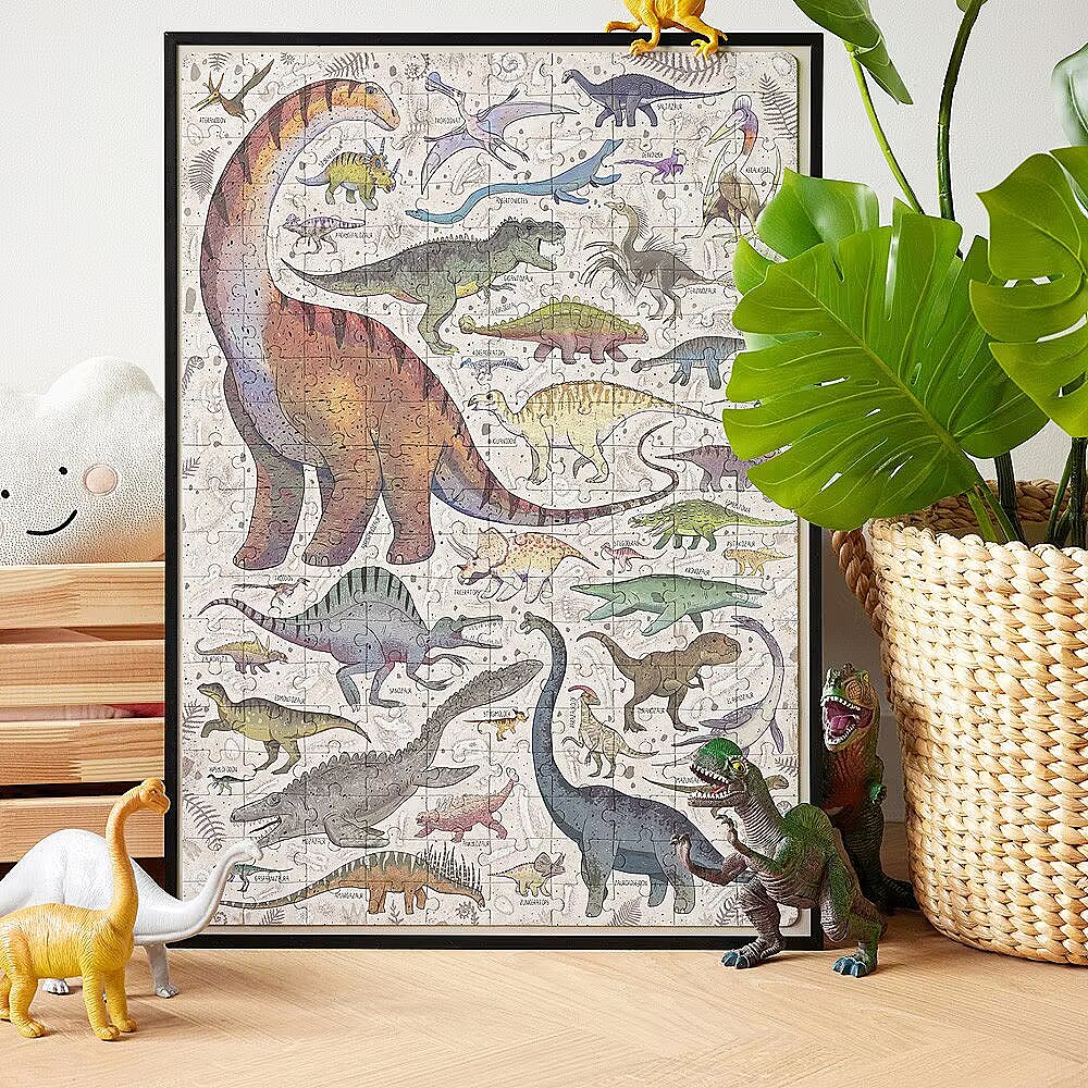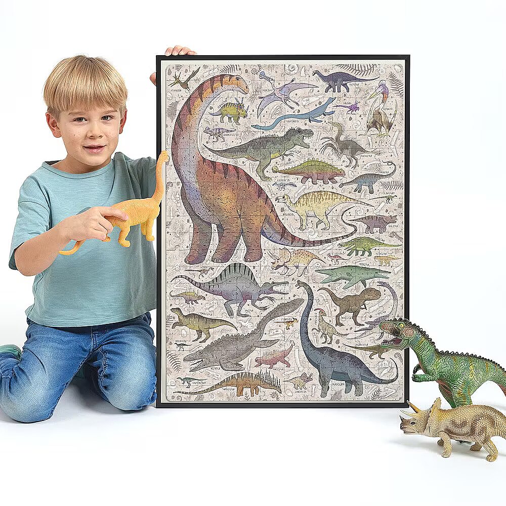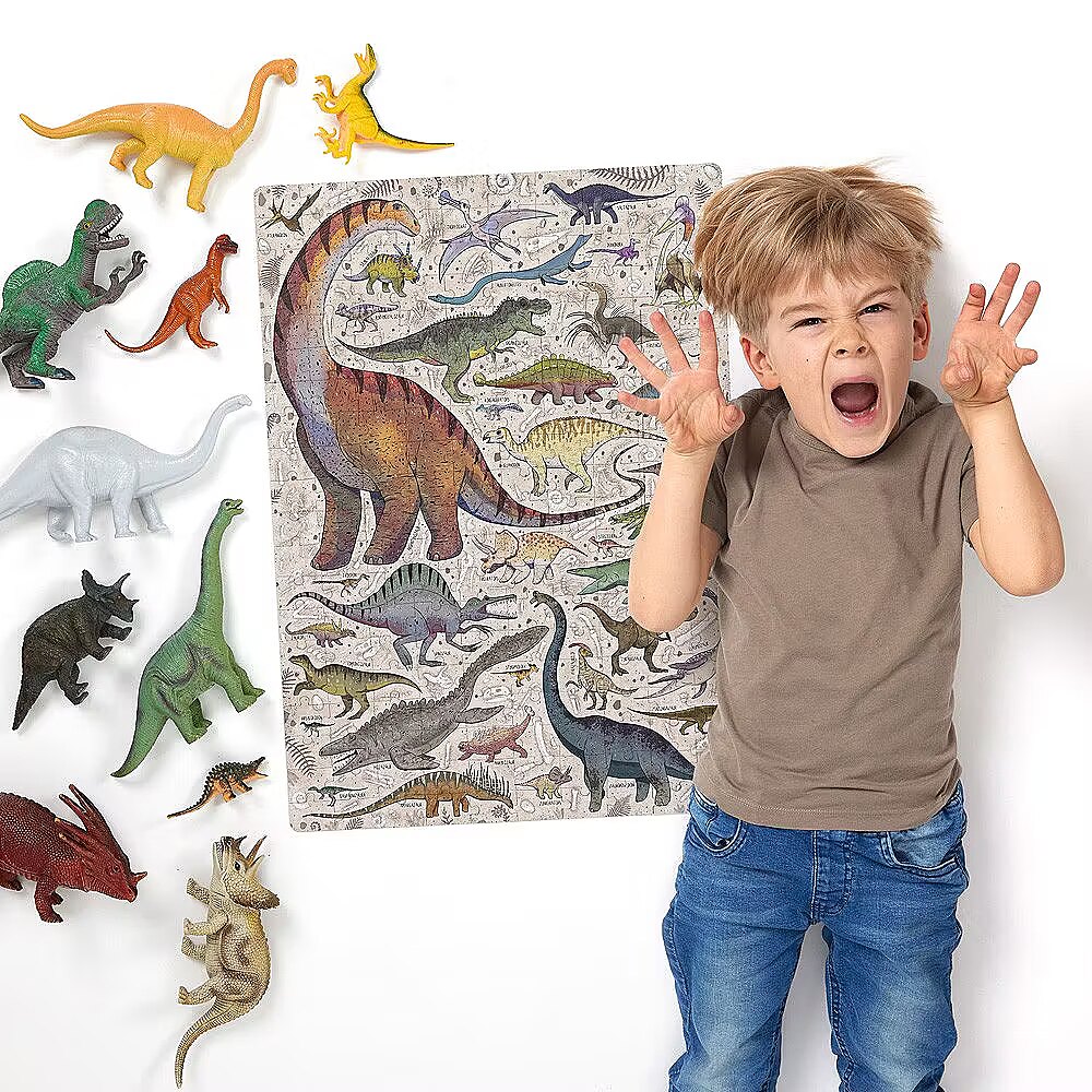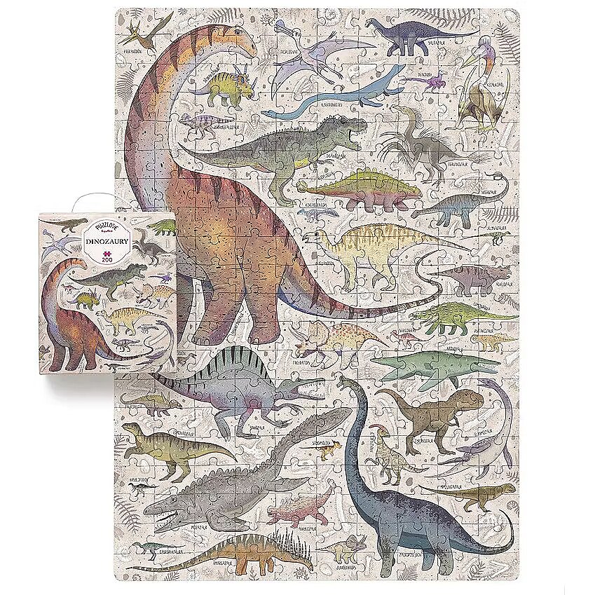 Description - Puzzle 200 pieces Puzzlove Dinosaurs Puzzlove Dinosaurs are coming your way! Hey, dinosaur lovers, palaeontologists, puzzle geeks and explorers, we have something for you! We've combined your favourite subject matter, beautiful illustrations and added loads of fun to create a beautiful jigsaw puzzle. You will find dozens of smaller and larger dinosaurs and other prehistoric reptiles from the Cretaceous period, do you know them all? Puzzlove CzuCzu will work well as a family puzzle, for older children and adults. Play as you like! Wrrr! Puzzlasaurus Rex rules! Puzzlove CzuCzu Dinosaurs have 200 pieces and the finished illustration is up to 48 x 68 cm. This is the perfect puzzle for older preschoolers and schoolchildren. It will inspire future palaeontologists and explorers to consolidate and acquire new DINO-knowledge. Stack them as you like: In your favourite company: with friends or siblings Alone At home, at school, on holidays and at digs On time or at leisure To improve patience and perseverance For the love of dinosaurs For the love of puzzles