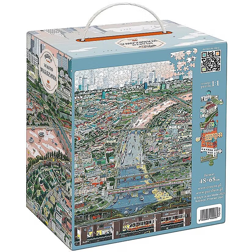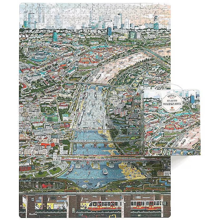 Description - The capital of Poland won the European Best Destination 2023 competition, and we understand it perfectly. Direction to Warsaw! Are you ready for another puzzle challenge and a journey through the illustrated city with your finger and eyes? Puzzlove CzuCzu Miasto Warszawa consists of as many as 1,000 elements. The finished illustration measures 48 x 68 cm. Put together puzzles the way you like: in your favorite company: with family, friends or alone for relaxation and rest, for long evenings or in one afternoon, to exercise the gray cells, train patience and perceptiveness (we suggest: find King Sigismund III Vasa not only on the monument!, the Mermaid and the Basilisk), for love of Warsaw and city trips, for the love of puzzles, to be able to hang the arranged illustration on the wall and enjoy the view. Puzzlove Miasto Warszawa is a perfect idea for a beautiful gift for adults, children, Warsaw residents, fans of the capital and all puzzle lovers.