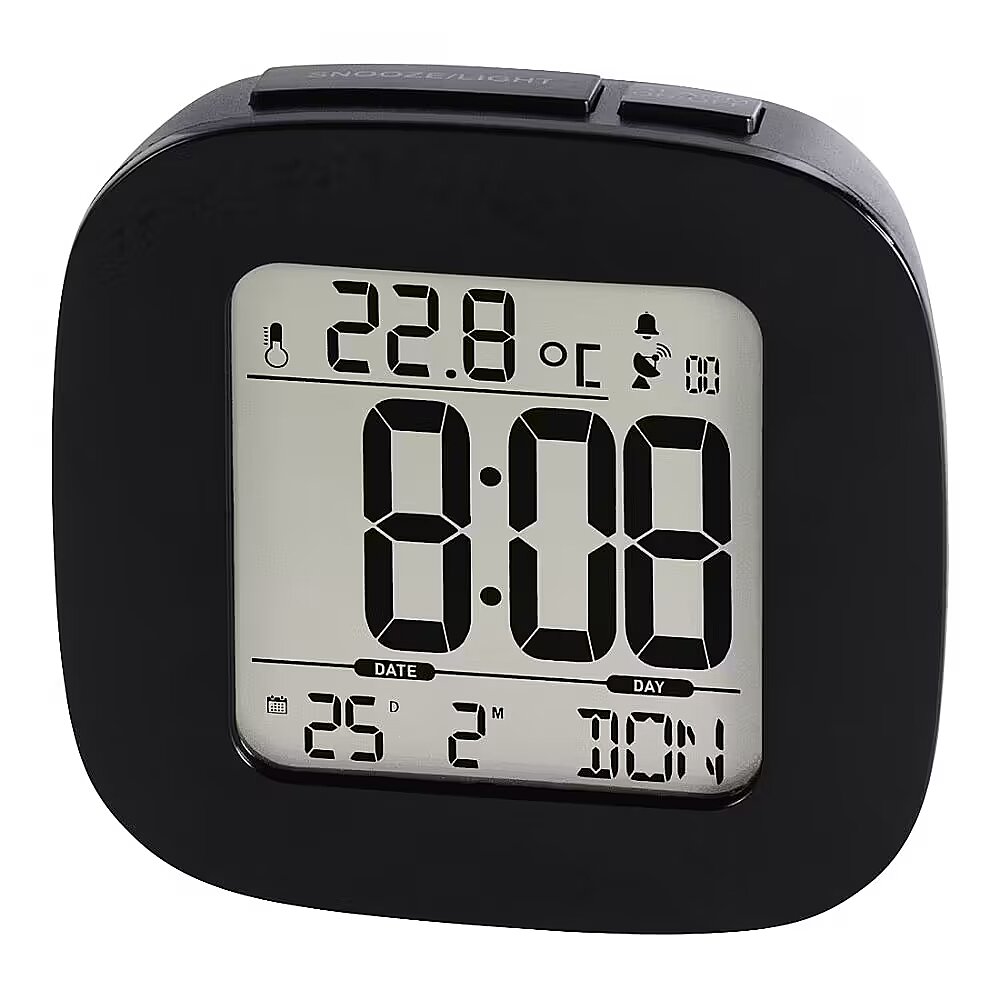 Description - Radio alarm clock RC45 black Clock controlled by DCF radio time signal with automatic time synchronization with the most precise clock in the world The time zone can be set manually if the DCF radio time differs from the time zone Quick alarm (speed) wakes sleepyheads with an increasing wake-up signal