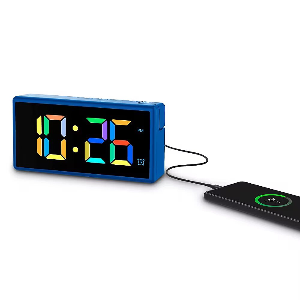 Cztery poziomy jasności wyświetlacza sprawiają, że możesz komfortowo korzystać z budzika zarówno w ciągu dnia, jak i w nocy. Tryb wyłączenia ekranu podczas ładowania urządzeń przez USB zapewnia spokojny sen bez zbędnych rozproszeń.