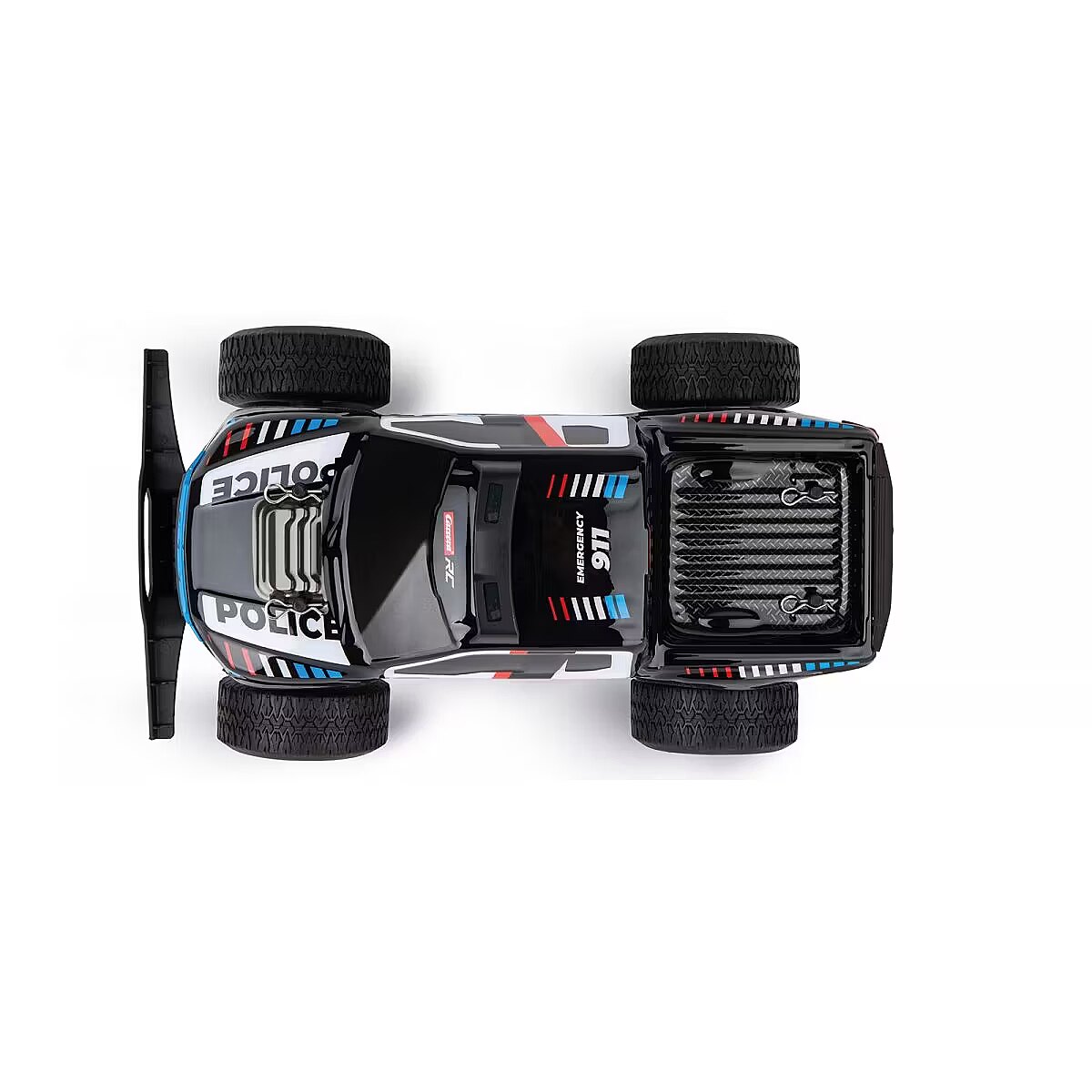 Description - The officially licensed Ford F-150 Raptor Police Pickup remote control car is a faithful reproduction of the real vehicle. The car has flashing LED police lights so it can simulate a realistic police appearance which adds to the excitement of police chases in a child's room. The RC car reaches a high speed of up to 25 km/h so it guarantees fast and exciting racing. Thanks to the digital proportional control, the vehicle can be steered precisely, providing a realistic driving experience and maximising control of the pickup truck. The Ford F-150 Raptor Police is equipped with a shock absorbing suspension that provides a smooth ride and effectively compensates for bumps on the track, giving it greater stability and comfort when tackling off-road obstacles.