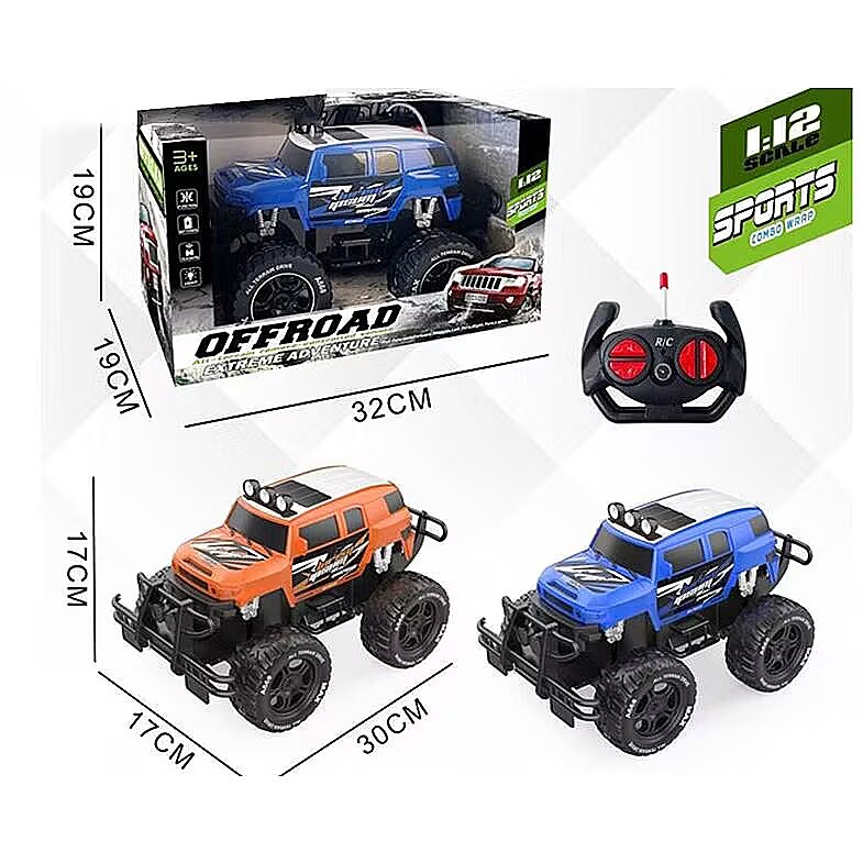Description - R/C car scale: 1:12 OFF-ROAD.  Car size: 30x17x17cm, 2 colours, package: window box, package size: 32x19x19cm. Steering wheel-shaped remote control, light. Product shipped randomly, no specific model available. Price is for one piece.