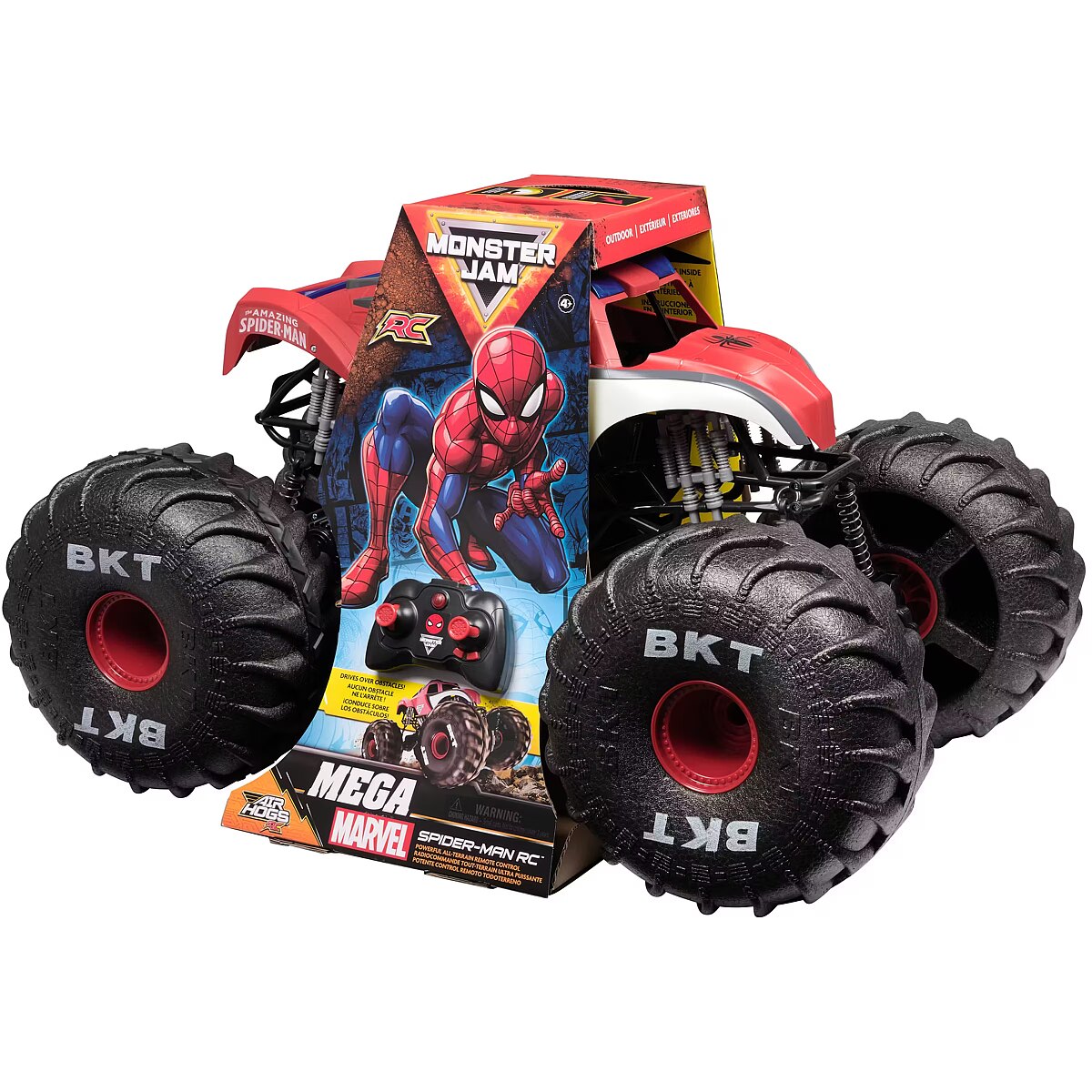 LongDesc - Swing into epic Monster Jam action with the Marvel Spider-Man RC Monster Truck. Dominating at over two feet long, this 1:6 scale behemoth is Spider-Man-themed, showcasing his iconic red and blue, primed for ground-shaking performances. Designed to navigate and conquer, its oversized tires and advanced suspension are set for hero-sized stunts and relentless Monster Jam excitement! In the hands of aspiring young drivers, this RC truck isn’t just a toy - it’s a portal to adventure, combining the raw power of Monster Jam with Spider-Man's heroic spirit. The intuitive remote puts kids in control of the action, driving their Spider-Man truck on off-road escapades and soaring jumps - no web required! Built tough for non-stop play and styled for the Spider-Man enthusiast, this RC truck is a call to the courageous, ready to take on any backyard villainy. This makes for a great alternative to a rc car, rc plane, remote control boat, remote control helicopter and other rc trucks. It's here to spin a web of excitement, inspiring kids to weave their own tales of Monster Jam heroics. So, power up, take the wheel, and propel the Mega Marvel Spider-Man RC Monster Jam Truck into a world where only the most audacious stunts are expected!Includes: 1 Monster Jam Mega 1:6 Scale RC, 1 Remote Control, 1 Charging Cable, 1 Instruction Guide