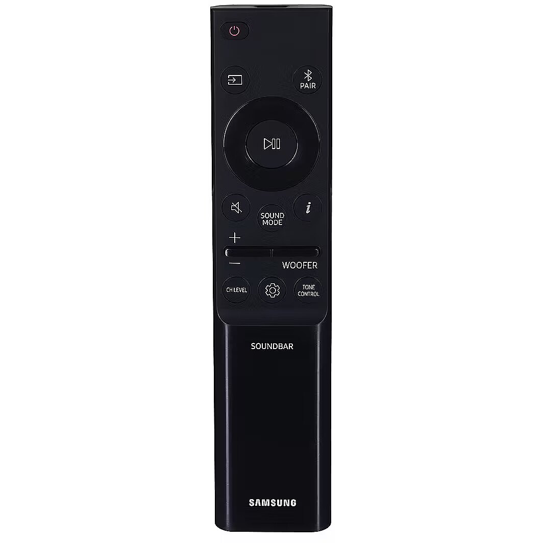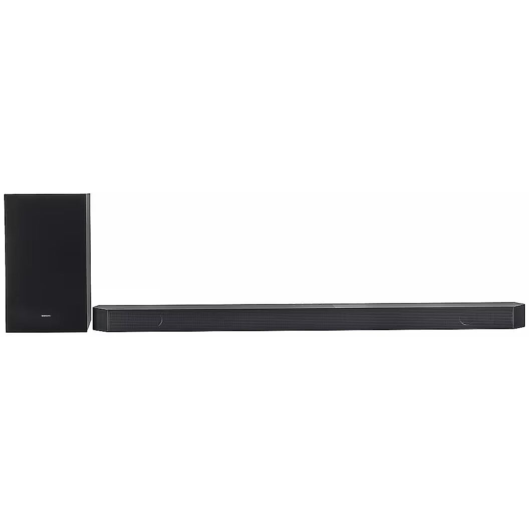 LongDesc - Wireless Dolby AtmosBuilt-in wireless Dolby Atmos cinematic soundTransform your home cinema set-up with Wireless Dolby Atmos. This technology takes your soundbar to the next level, wirelessly delivering pinpoint sound effects for cinematic 3D surround sound - just sit back and enjoy the show.True 3.1.2ch Sound9 speakers delivering exceptional Hi-Fi sound quality3.1.2ch sound caters for both your music and entertainment needs with Hi-Fi quality audio. And, experience exceptional Dolby Atmos sound thanks to two dedicated upfiring speakers. All carefully tuned by the award-winning Samsung Audio Lab.Samsung Q-SymphonyYour TV and Soundbar play together in perfect harmonyEnhance your viewing experience with amazing sound from both your TV and soundbar, working in perfect harmony, without a complicated set up. Just kick back, and let Q-Symphony take care of it all. Elevate your sound experience, perfected by Samsung.Adaptive SoundAdvanced AI tailors the audio to what youre watchingExperience sound like never before. Adaptive Sound uses advanced AI to tailor the audio to match whatever you're watching. Feel like you're a part of the action watching movies; or enjoy music like youre at the concert. Even at low volume, it clarifies voices to catch every word.Voice AssistantsHands-free voice control to skip the track or crank up the volume with easeEffortlessly control your soundbar with Amazon Alexa built-in[1] and Google voice assistant. Our smart soundbar lets you play music, check the weather, search the web, and more – all you have to do is ask.Built-in Centre Speaker and AVANever miss a wordExperience crystal clear dialogue thanks to a special built-in center speaker and Active Voice Amplifier (AVA) that detects background noise and clarifies the voices on your screen. No more rewinding to hear the conversation in your favourite shows. Available only at Samsung.Game Mode ProDirectional sound dedicated for an extraordinary gaming experienceDive deep into the action using our special gaming setting. Experience the roar of a sports car on the open road and hear opponents sneaking up behind you with pinpoint directional sound. It's all configured automatically to help you make most of your gaming experience.Wi-Fi and Bluetooth ConnectionCable free TV to Soundbar connection and music streamingConnect your soundbar wirelessly with Bluetooth or Wi-Fi for a mess-free solution. With this feature you can position your soundbar anywhere in the room without the need for trailing cables. Play music straight from your favourite apps or get optimised sound functionality using the SmartThings app.AirPlay2 and Chromecast Built-InSeamlessly connect your iPhone and soundbar with Airplay 2[2] and ChromecastSay goodbye to your remote. Use your iPhone with AirPlay 2 to control the volume and switch songs. Play your favourite tunes in one room, stream a podcast in another. If you get a call, no worries – your friends can take over with their music seamlessly.Tap SoundJust tap to playStreaming your favourite music has never been easier. Simply tap your Galaxy Android smartphone on your soundbar and enjoy rich sound quality without the hassle of manual pairing. Yes, it's really that easy.Samsung Audio LabCarefully tuned in Samsung's award-winning Audio LabTested and tuned at the California Audio Lab, where our world-class audio engineers apply the advanced acoustic technologies and cutting-edge computer modelling to give you perfectly balanced, space-filling sound.SmartThings AppSmart soundbar for a smart homeWith the SmartThings app, you can connect and control your soundbar along with 1000s of other smart devices all in one place. Whether theyre from Samsung or other brands such as Amazon, Google, Philips Hue or Ring.One Remote ControlDeclutter your coffee table with just one universal remoteSimplify your life with a single remote. Samsung's Smart Remote lets you effortlessly control multiple connected devices with just one click. It's not just for your soundbar; it can link up with various compatible devices from your TV to your set-top box.HDMI eARCA seamless signal for the best Dolby Atmos experienceOther HDMI ports can't support the full Dolby Atmos or DTS:X experience. But with this cinematic soundbar, you can kick back, unwind, and savour the original, high-quality audio delivered through HDMI eARC (Audio Return Channel) for the ultimate surround sound experience.Wireless Surround Sound CompatibleMake sound more cinematic with wireless rear speakers[3] Say goodbye to messy cables - upgrade your cinematic experience with our wireless surround sound rear speakers. It seamlessly fits within your space for a hassle-free immersive setup[3]