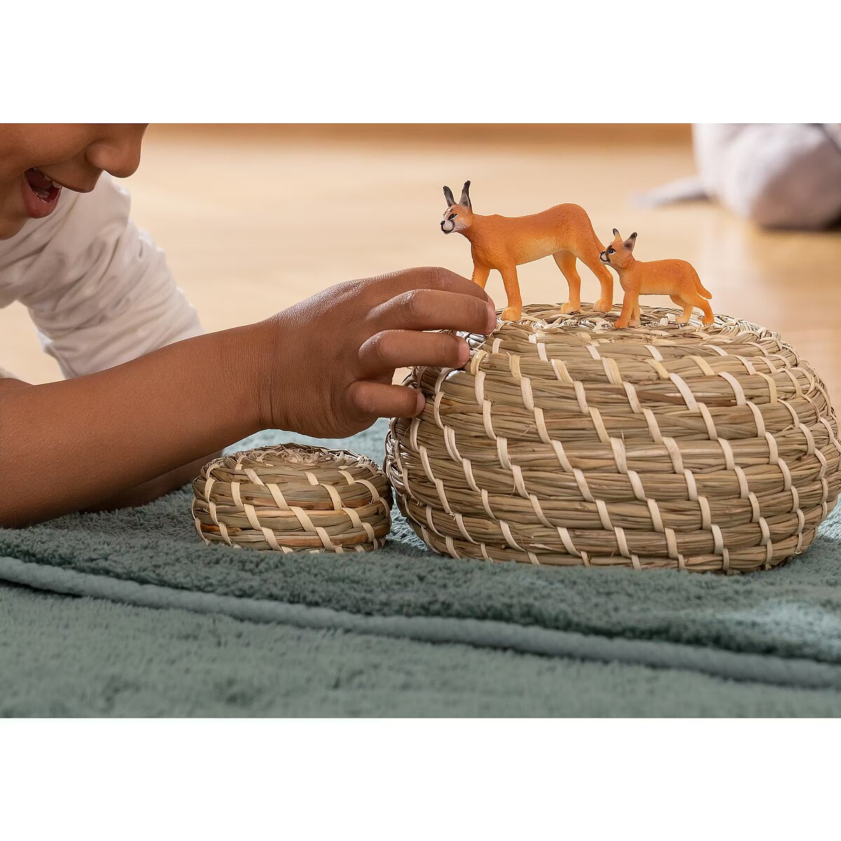 LongDesc - With those highly-tuned ears, the female Caracal can hear absolutely everything - even kids playing with their schleich® toys in bed after bedtime. So go to sleep! From the tufted ears to the bushy tail, the caracal toy figure from schleich® is 100% realistic and a thousand percent fun.The pretty female Caracal stalks through the steppe on her long legs. She is probably looking for food for herself and her young. She tracks down her prey quickly, because she can hear the slightest rustle in the bushes. No wonder: Her long brush ears work like fine antennae and she can feel even the slightest vibration! I wonder if she just heard something. She looks as if she's about to pounce and take out a mouse with one powerful leap.