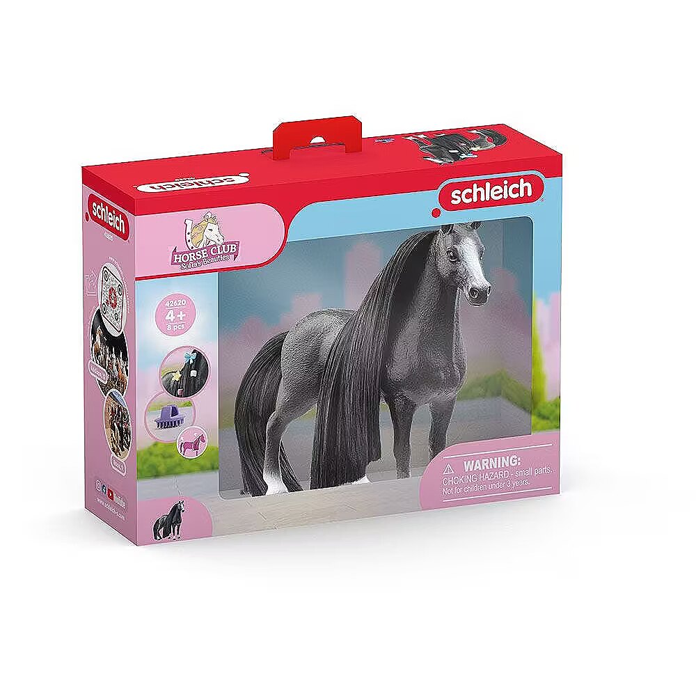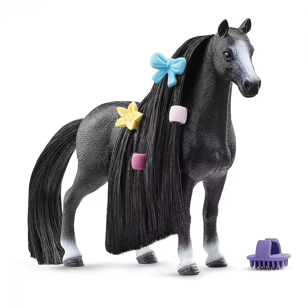 Description - Beauty Horse Quarter Horse Mare Such a long mane and tail! They definitely need to be groomed and thoroughly brushed. You can see how much the beautiful Beauty Horse Quarter Horse mare enjoys being styled with hair beads and flowers. How practical: If she does have a bad hair day, you can simply switch out her mane and tail later with replacement parts from schleich. The pretty Beauty Horse Quarter Horse mare has such a great, long mane, so you just have to pay special attention to it when grooming. Thats why she carries her comb with her wherever she goes to make sure her hair always shines like silk. Which braided hairstyle do you think she would like today? Make sure the beautiful hair beads are used to decorate her mane. Or would she prefer a bow in her hair? The long mane can be groomed with a comb and is removable. Colorful hair beads and flowers can be attached to the mane. Discover the world through play with the authentic and detailed figures from schleich. They look so real, they may just start to run! schleich products stimulate the imagination and guarantee an educational play experience full of adventure. This schleich product is part of the HORSE CLUB Sofias Beauties theme world and is suitable for children between 4 and 10 years of age.