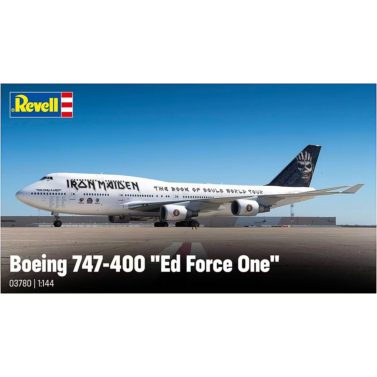 Description - Boeing 747-400 Ed Force One the legendary Iron Maiden aircraft Experience the fascination of The Book of Souls World Tour 2016 with a unique model of the Boeing 747-400 Ed Force One. This finely detailed model brings the impressive presence of the original aircraft into your home. With highly detailed parts and realistic design, this kit provides an immersive building experience for model enthusiasts and Iron Maiden fans alike. The meticulously designed CF-6 engines, detailed undercarriage recesses and underside of the wings make this model an unparalleled collector's item. Four CF-6 engines with meticulously detailed components Highly detailed undercarriage recesses and underside of wings Detailed undercarriage that can be retracted or extended Realistic decals for an authentic representation of Ed Force One Exclusive special edition with official Iron Maiden licence The Boeing 747-400 Ed Force One served as the concert plane for heavy metal band Iron Maiden during their 2016 world tour The Book of Souls, piloted by vocalist Bruce Dickinson and took the band and its crew safely to more than 35 countries. Ed Force One is not just an aircraft, but a symbol of the band's epic journeys and worldwide bond with their fans. This model celebrates the band's remarkable history and unparalleled touring.