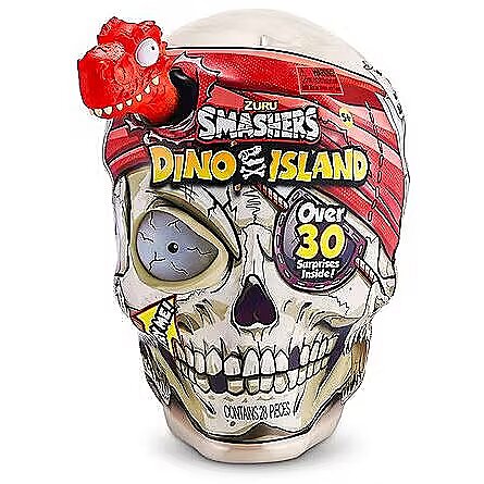 Description - Amazing giant skull from Dinosaur Island Press the eye in the skull to make it light up and speak in the Pirate's voice! The skull is over 30 cm tall. Inside there are 30 hidden surprises. Search through the three plastic masses: foam, slime and magic sand to find the pieces of the large Dinosaur. Assemble the Dinosaur figure. Do you have a T-Rex or a prehistoric shark? These figures are transparent, so when you put a glowing Pirate's eye in the Dinosaur's mouth, the effect will be amazing! That's not all. The set also includes a Pirate figure and 5 small dinosaur eggs to break. There are hidden figures in these eggs. These little eggs are amazing because they can be broken and reassembled many times, using the special egg socket. The set also includes 6 Dino Island stickers and a gold pencil topper with a dinosaur skull. Product sent at random. Price is for one piece. Available dinosaur colours: red, black.