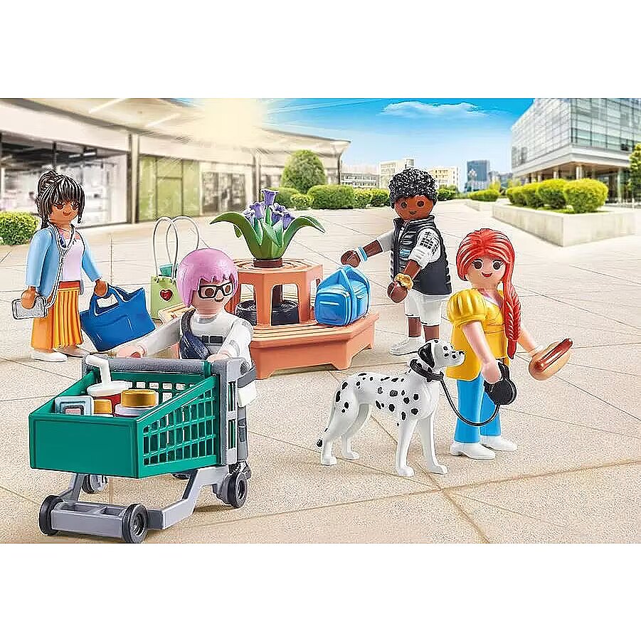 Accessories included - Figurki: 2 mężczyzn, 2 kobiety Zwierzęta: 1 pudel Akcesoria: 1 okrągła ławka, 1 doniczka z liliami, 1 wózek na zakupy, 1 torba plażowa, 2 szklanki z pokrywką, 1 smycz dla psa, 1 torba na zakupy, 1 torba podróżna, 1 odtwarzacz MP3, 1 hotdog, 1 kubek do picia, 1 saszetka