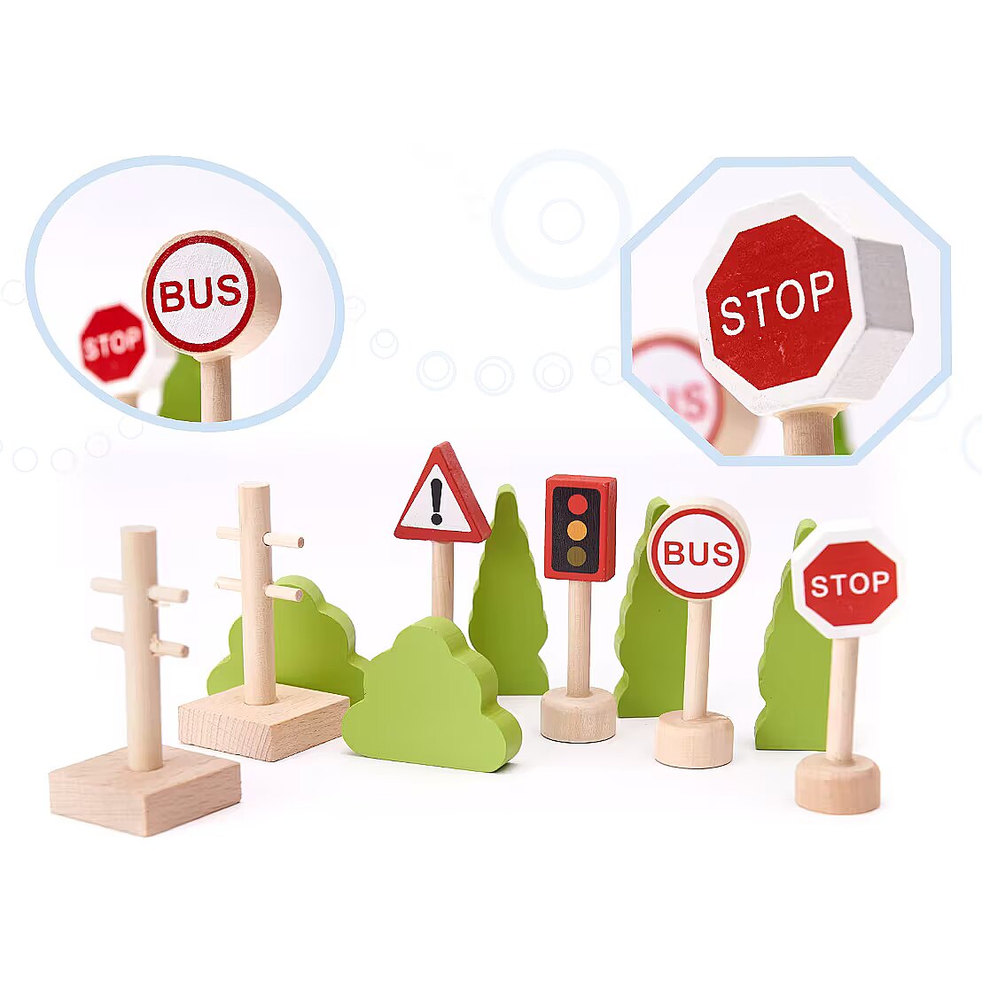 description_en - The wooden train/car track is quite a treat for the little ones! Colorful elements from which extraordinary landscapes are created. Rich set - as many as 70 elements! - gives virtually unlimited possibilities of creation.