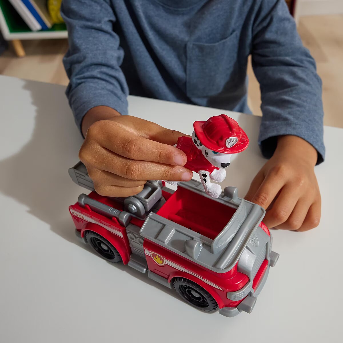 LongDesc - The PAW Patrol are on a roll in their rescue vehicles! Join Marshall on action-packed missions with his Firetruck! When trouble strikes, clip Marshall’s feet in the driver’s seat and roll to the rescue with real working wheels and a movable ladder! Featuring authentic detailing and realistic features, the PAW Patrol’s beloved pup & PAW Patrol vehicle bring all excitement of the show to life. Marshall and his toy vehicle are eco-consciously manufactured and are made from at least 80% pre-consumer recycled plastic! Team up with the rest of the PAW toy figures and their rescue vehicles (each sold separately) and help save the day in Adventure Bay! PAW Patrol preschool toys & toddler learning toys are gifts for kids who are fans of the show, fostering imaginative pretend play and enhanced fine motor skills. Relive your favorite moments from PAW Patrol seasons, like the Mighty Pups and PAW Patrol Movie, then create your own adventures with the PAW Patrol pups and their respective toy cars (each sold separately). Elevate the excitement with the complete Action Pups & Air Rescue team sets, which include PAW Patrol vehicles, action figures & toddler toys, for endless hours of PAWsome, series-inspired adventures!Includes: 1 Vehicle, 1 Figure
