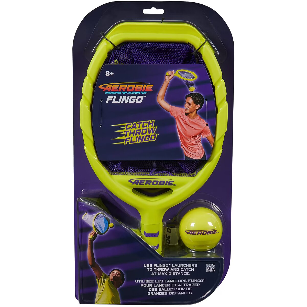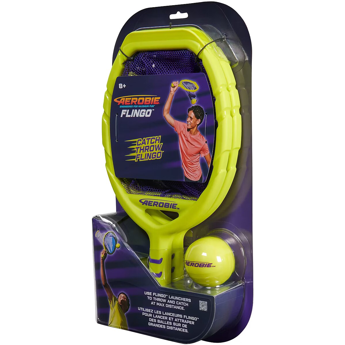 LongDesc - Go long with the ultimate catch and throw game with the Aerobie Flingo! Level up your outdoor fun and get the farthest throw in the park, using the innovative design to throw and catch in a single motion. Unlike a lacrosse stick, the ball is catapulted through a hole in the back of the net. This gives it tremendous mechanical advantage while maintaining incredible accuracy for fun sports & outdoor competitions! The large throwing & catching net makes catching a cinch. The net opening is larger than an adult’s baseball mitt, so you can throw AND catch like a professional baseball player, but all with one hand. Don't waste time learning how to throw and get right into the fun! The Flingo is just as easy as any other velcro catching ball set and will only take a few tries to master! There is no trick to catching! Just use the net to snag the incoming ball, then allow it to naturally settle into the ideal launching position. To launch, just fling the ball overhead in the direction you want to throw! Aerobie kids toys & games, beach toys, outdoor activities and summer toys are great cool games to maximize fun and are designed to deliver exceptional performance, perfect for all skill levels!Includes 2 Flingo Paddles & 1 Ball
