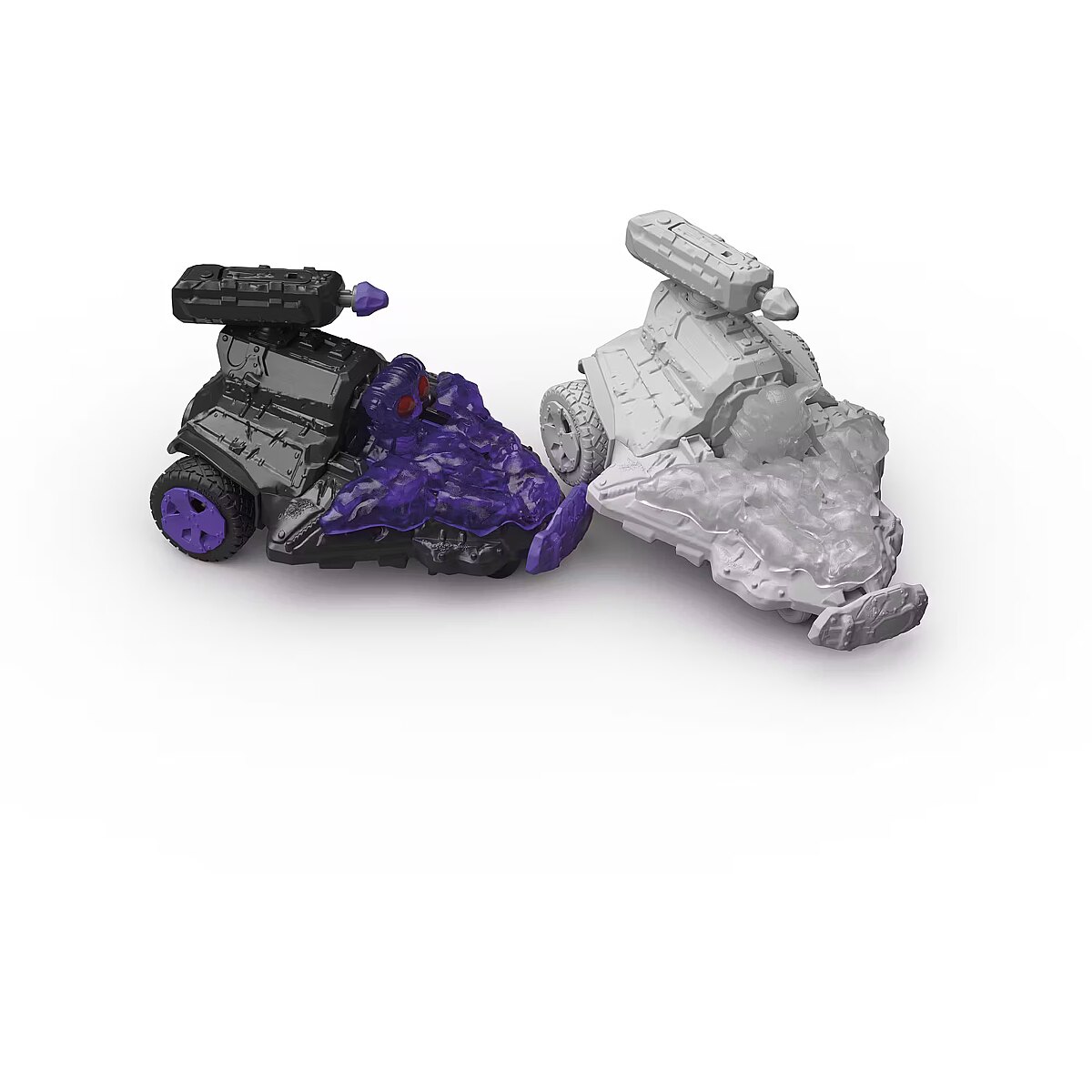 LongDesc - The mini creature in its shadow jet looks pretty dangerous as it speeds through ELDRADOR®. The front of the jet is decorated with transparent shadow crystals that sparkle purple. The bumper is also purple and can withstand any collision. The pivoting firearm is at the ready, to shoot any one in its way with crystal arrows.The Mini Creature races through ELDRADOR® at full speed in its shadow jet. Suddenly it slams on the brakes and brings its firearm into position. With lightning speed and a practiced grip, it inserts the arrow with the sharp crystal tip. Who has it spotted? The Mini Creature shifts into reverse and takes a run-up. Then the shadow jet lurches forward. It’s about to ram its opponent. You really shouldn't mess with the Mini Creature. Let’s get out of here!