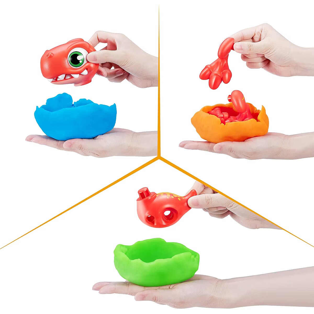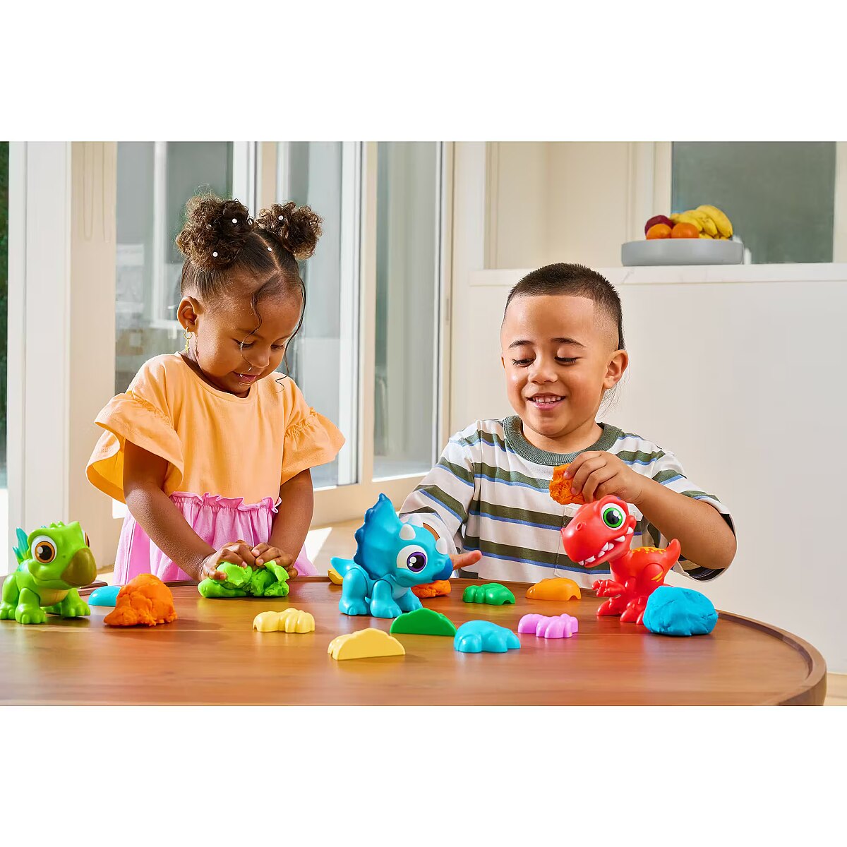Packaging content - Packaging content - 6 Dino Body Parts (1 Dino total); 1 x Dino Egg; 3 x Dino Dough Colors; 3 Molds); 3 x Stickers; 1 x Instruction Sheet; 1 x Collector's Guide