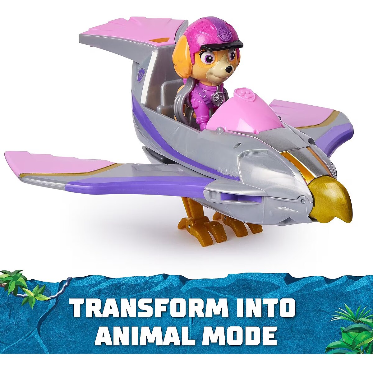 LongDesc - Get ready for exciting rescue adventures with Skye and her Falcon-themed Jungle Pups rescue vehicle! Skye’s vehicle features an exciting transformation, into rescue mode, by pushing the front on Skye’s Falcon vehicle to activate her vehicles wings, folding out its beak and rotating the talons down, to let the falcon stand on its own and clear away obstacles! For even more fun and exciting PAW Patrol series-inspired missions, collect all the PAW Patrol Jungle Pups toys and the PAW Patrol: The Mighty Movie toys, like the awesome Aircraft Carrier HQ and all the special edition PAW patrol toys for girls and boys, like the Mighty Pups, Aqua Pups and Big Truck Pups toy figures and playsets (each sold separately). With PAW Patrol preschool toys, a kid can explore his or her imagination, and develop their motor skills through pretend play, as they relive their favorite scenes from the shows. Enjoy endless PAWsome adventures with Skye and her Jungle Pups Falcon Vehicle!Includes: 1 Vehicle, 1 Figure