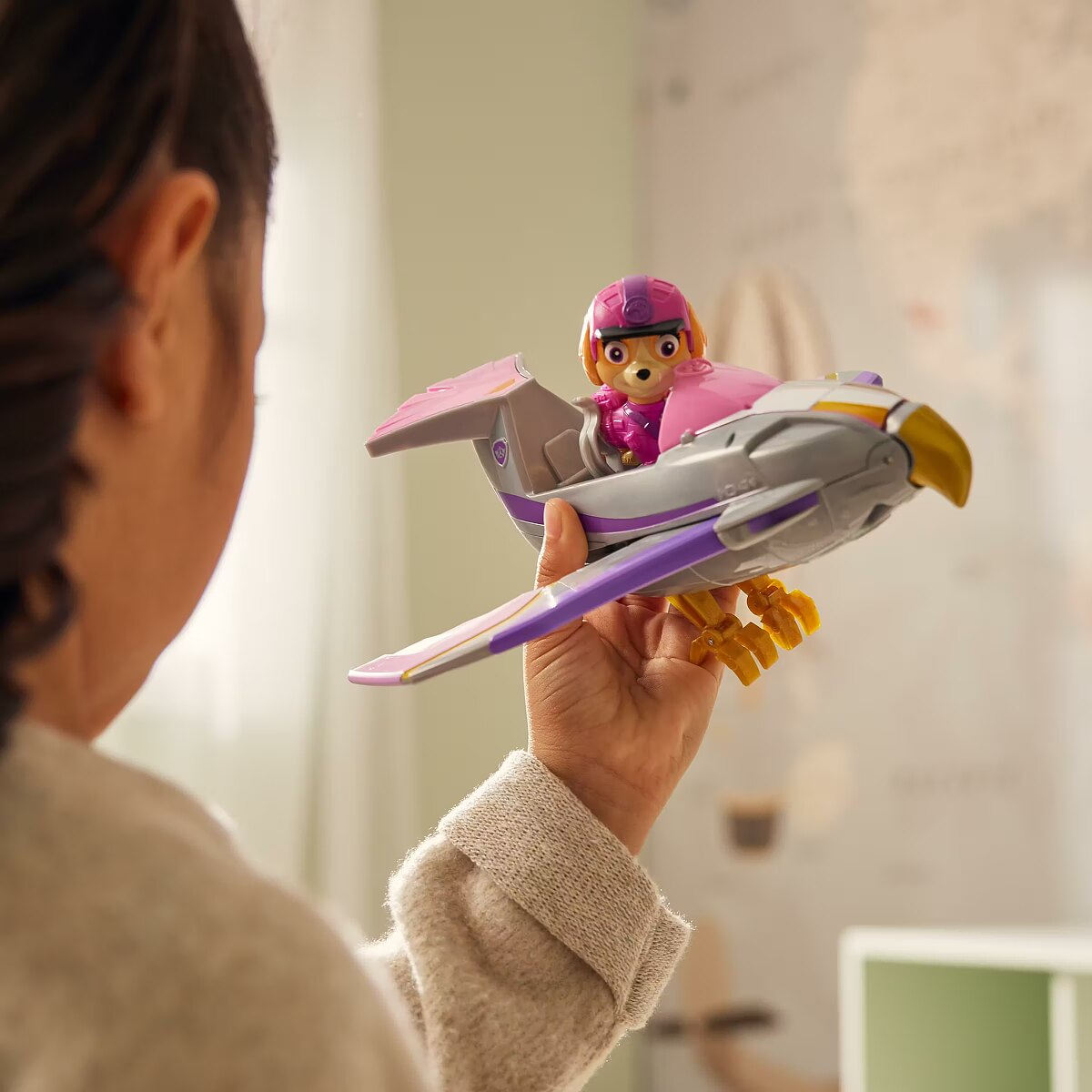 LongSummaryDescription - PAW Patrol Jungle Pups, Skye Falcon Vehicle, Toy Jet with Collectible Action Figure, Kids Toys for Boys & Girls Ages 3 and Up. Product type: Vehicle, Theme: PAW Patrol, Recommended age (min): 3 yr(s), Material: Plastic, Product colour: Grey, Pink, Purple
