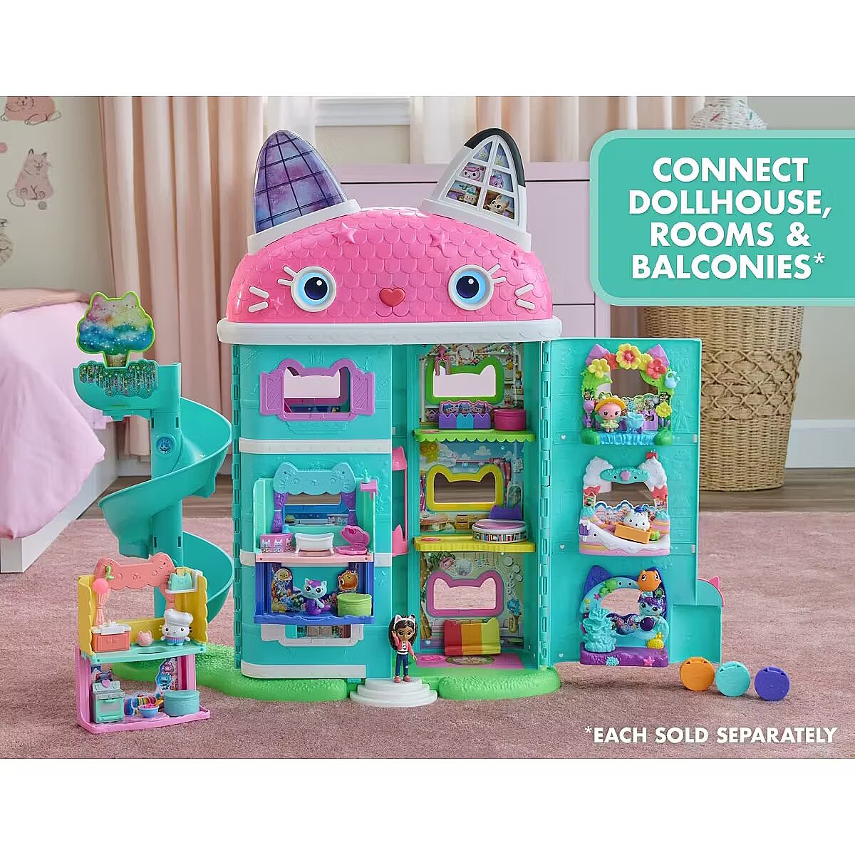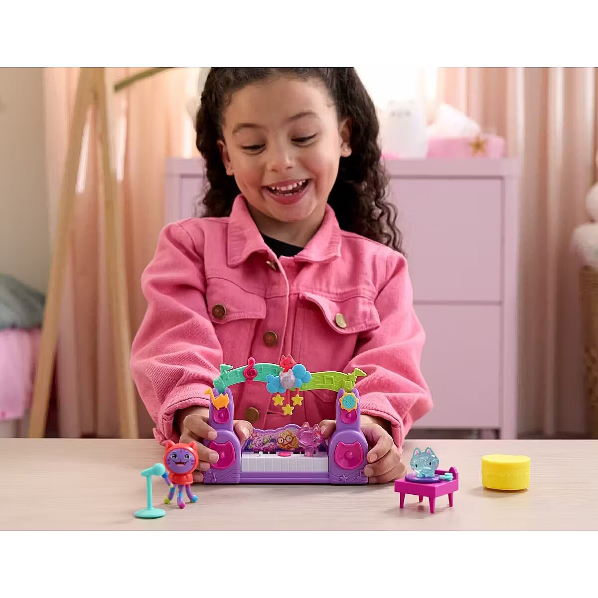 Description - Koci Domek Gabi Film: Zestaw Filmowy Wejdź do magicznego świata filmu "Koci Domek Gabi" z zestawem Paw-Some Party Story! Ten zestaw to fantastyczny sposób na stworzenie kociastycznych imprez tanecznych na poddaszu domku dla lalek, z figurkami DJ Kocimiętki i Gumkotka, mebelkami dla lalek i niesamowitymi kocimi akcesoriami imprezowymi, takimi jak kocie głośniki, gramofon i stojak na mikrofon (domek dla lalek sprzedawany oddzielnie). Spraw, by głośniki dudniły dzięki Magii Kociego Żółwika, naciskaj klawisze pianina, a następnie zakręć gramofonem i zakołysz kulą dyskotekową, aby zapewnić sensoryczną i manualną zabawę z tymi uroczymi zabawkami edukacyjnymi. Rozpakuj Kocią Przesyłkę, tak jak robi to Gabi w serialu, aby znaleźć akcesorium-niespodziankę, a następnie zeskanuj kod QR, aby odblokować niespodziankę w aplikacji Koci Domek Gabi. Ten zestaw wspaniale inspiruje do zabawy i zachęca do kociastycznych odkryć dzięki uroczym zabawkom dla dzieci z serii Koci Domek Gabi. Akcesoria Kociego Domku Gabi to idealne prezenty dla dzieci, pozwalające przeżyć niezapomniane zdarzenia znane z filmu o Gabi, a także stworzyć nowe przygody w Kocim Domku, wykorzystując zabawkami takie jak akcesoria i meble do domku dla lalek, kociastyczni przyjaciele i fantastyczne syrenkowe zabawki, zapewniające niekończące się godziny wspaniałych kocich przygód (każda sprzedawana osobno).