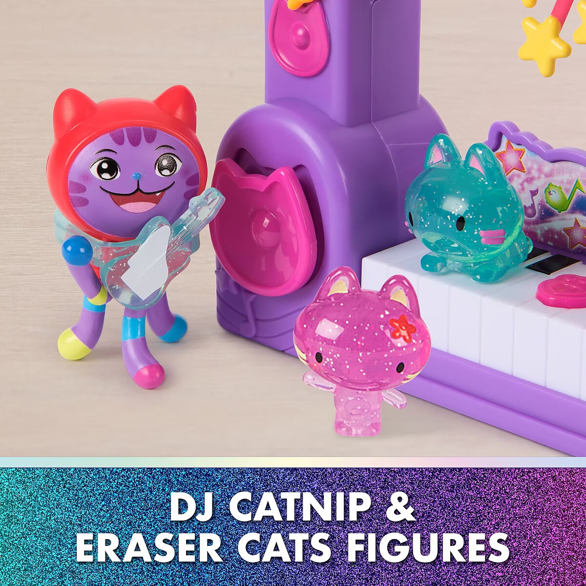 Title - Gabby's Dollhouse : The Movie, Paw-Some Party Story Set with DJ Catnip, 2 Eraser Cat Toy Figures & Accessories, Kids Toys for Girls & Boys Ages 3 and Up