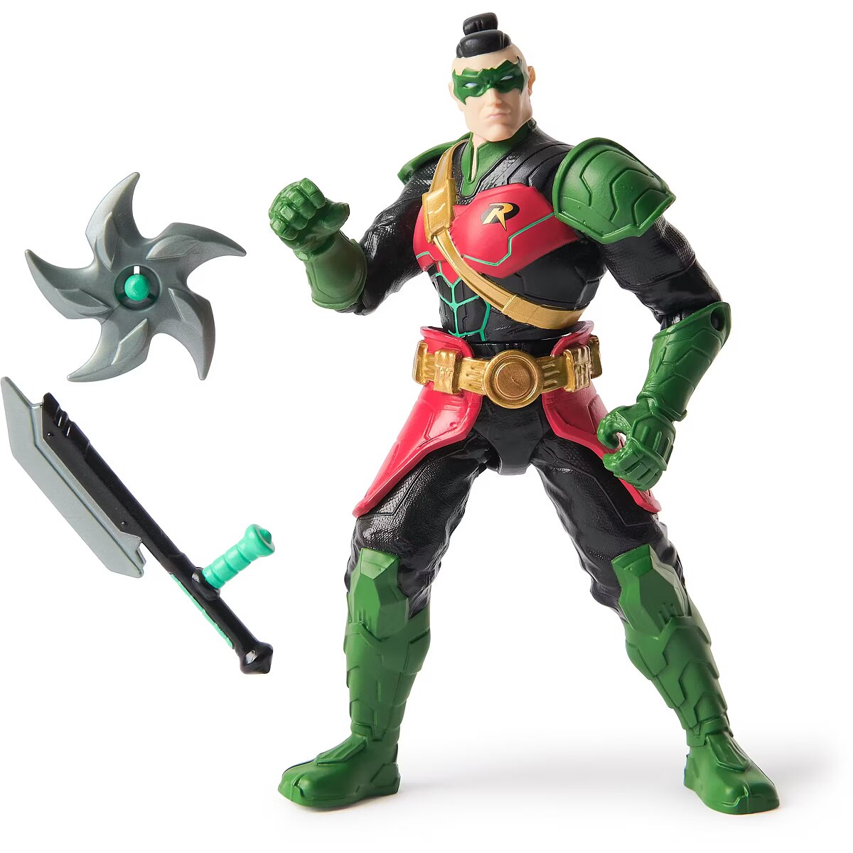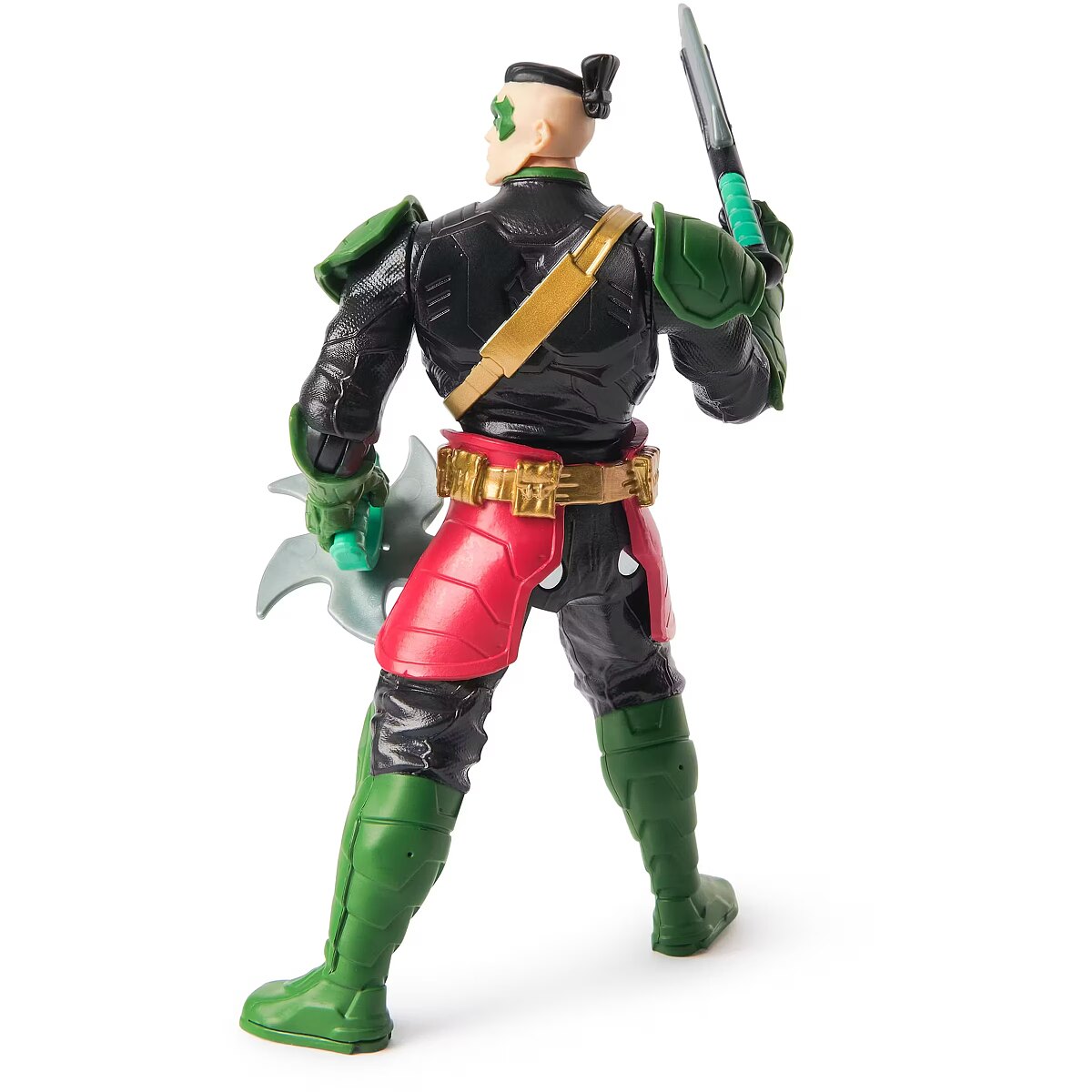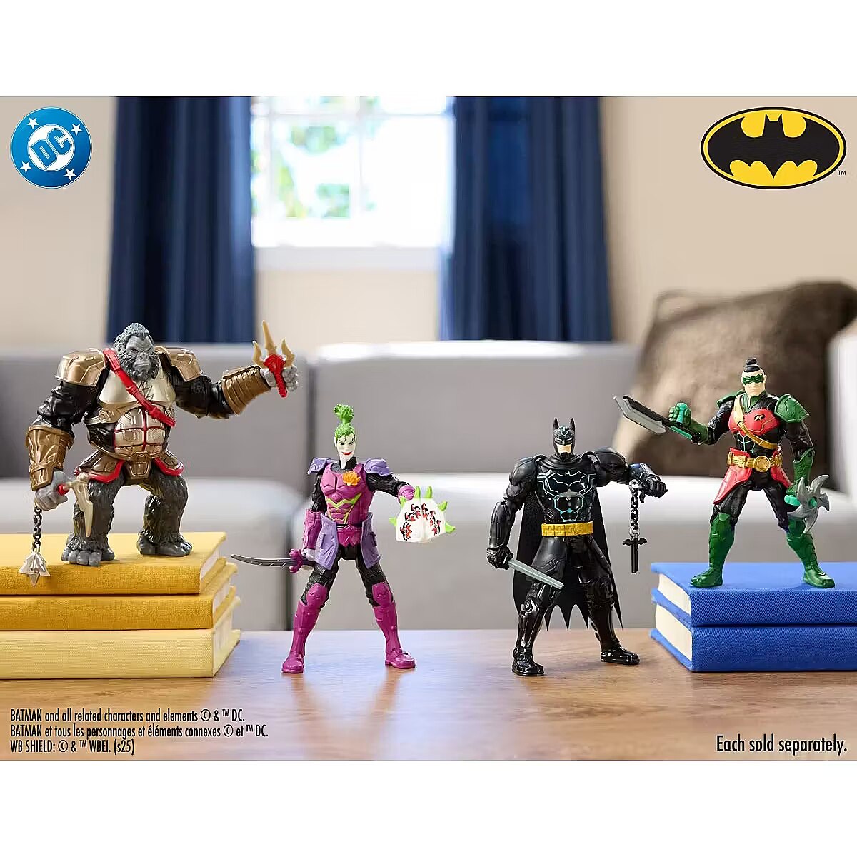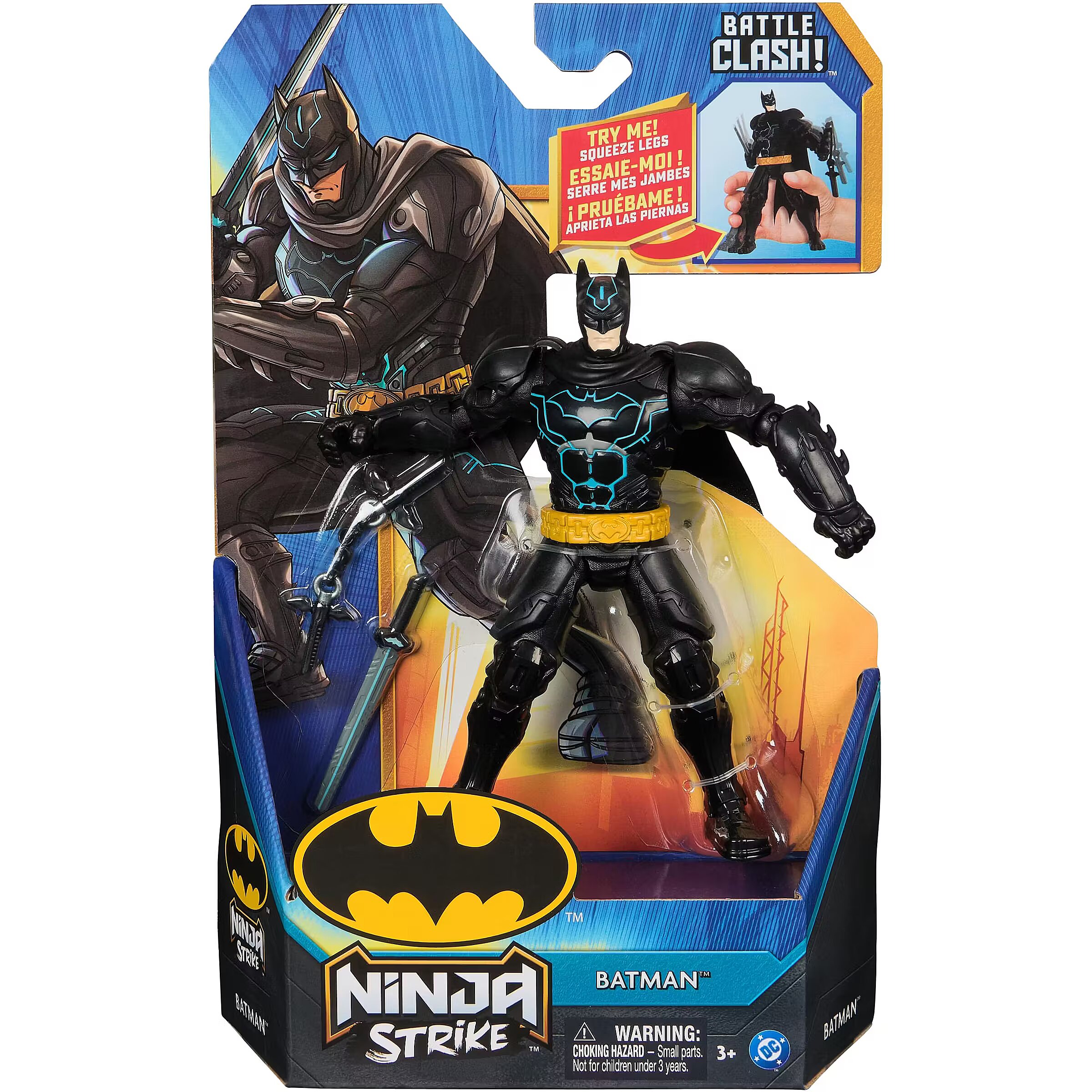 Description - Batman Ninja: Action Figure with Accessories - Assortment Bring your favorite DC Comics superhero battle scenes to life with the 15 cm Batman Ninja Strike Battle Clash figure, an exciting addition to any DC action figure set or collection. This dynamic 15 cm figure lets you recreate epic battle scenes at home. A single press of the legs activates an exciting battle feature, bringing kids imaginative stories to life. The figure comes with two ninja accessories, allowing for endless storytelling possibilities. Equip your figure with weapons and ninja gear, then squeeze its legs to see it strike. The movable head adds realism, making this figure perfect for creating your own adventures. Dive into the DC multiverse with this immersive toy and reenact epic battles with realistic attacks. Kids can use their imagination to play and create their own superhero stories. Perfect as a birthday gift, holiday wish-list item, special-occasion present, or an addition to any boys action figure collection. Combine these superhero toys with DC Comics superhero vehicles or face off against their enemies (each sold separately). Bring home the Batman Ninja Strike Battle Clash figure today and take superhero play to the next level. Various designs. Product shipped at random; selection of a specific model is not possible. Price applies to 1 piece.