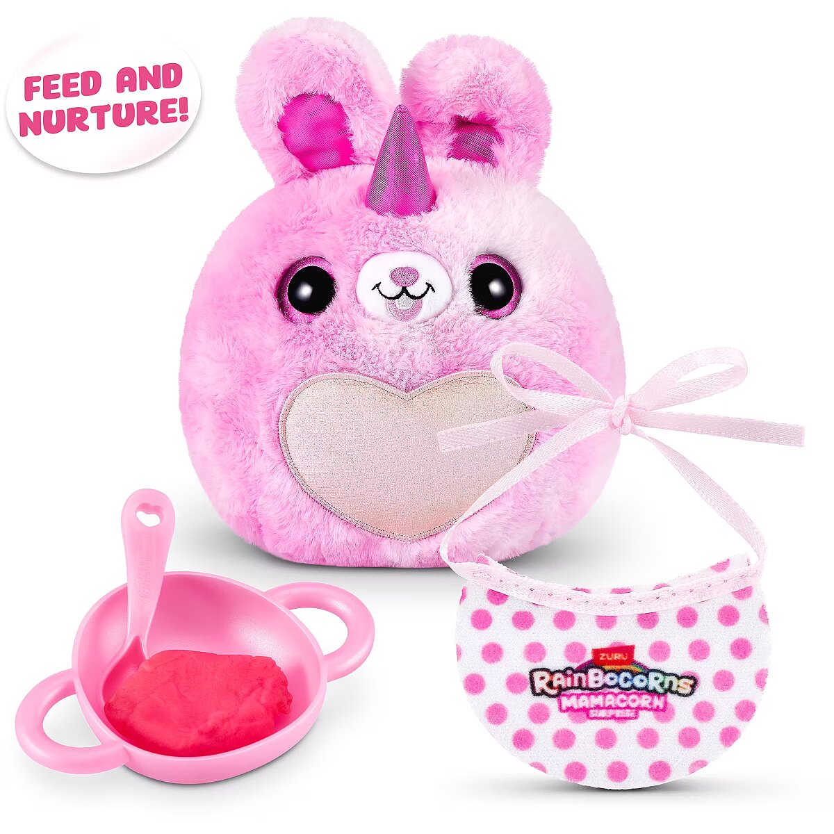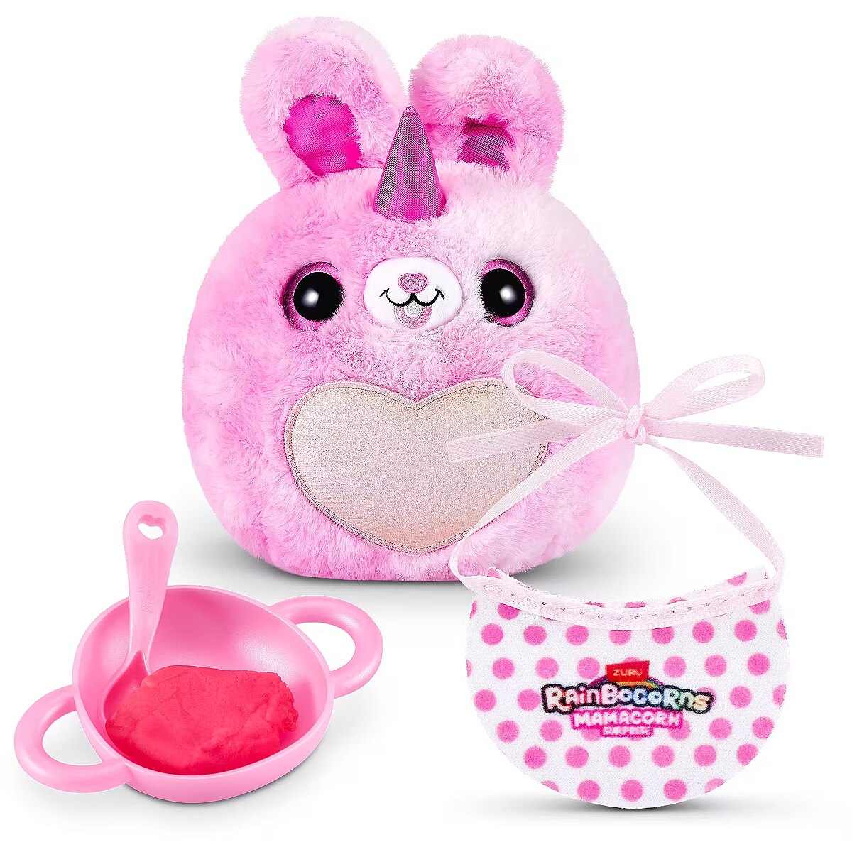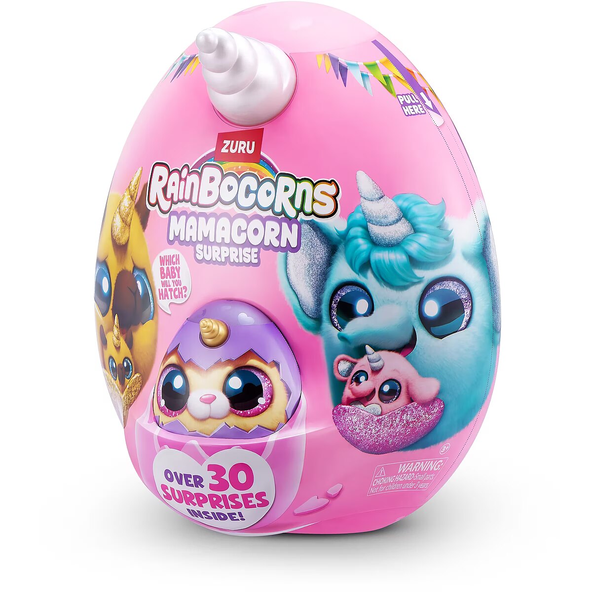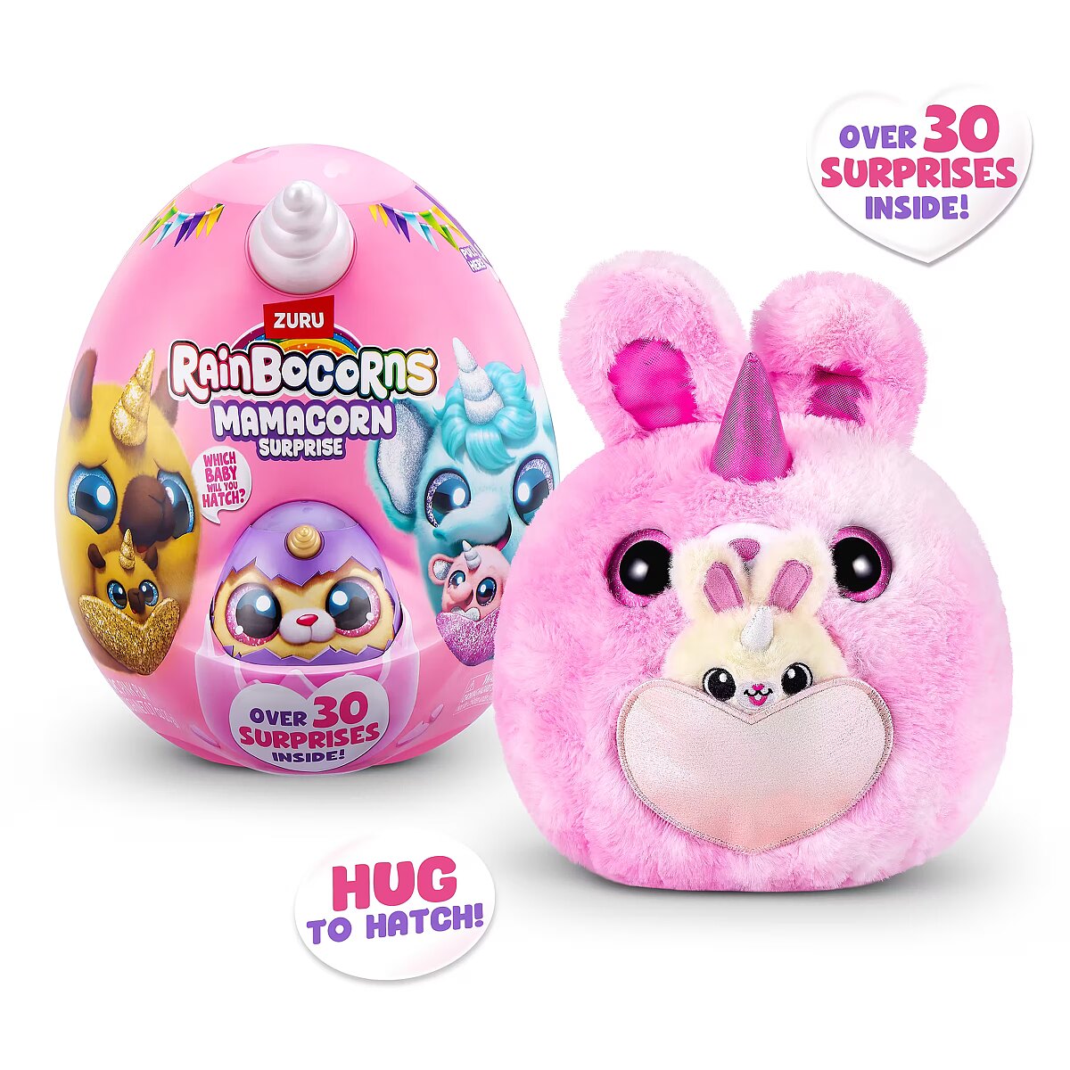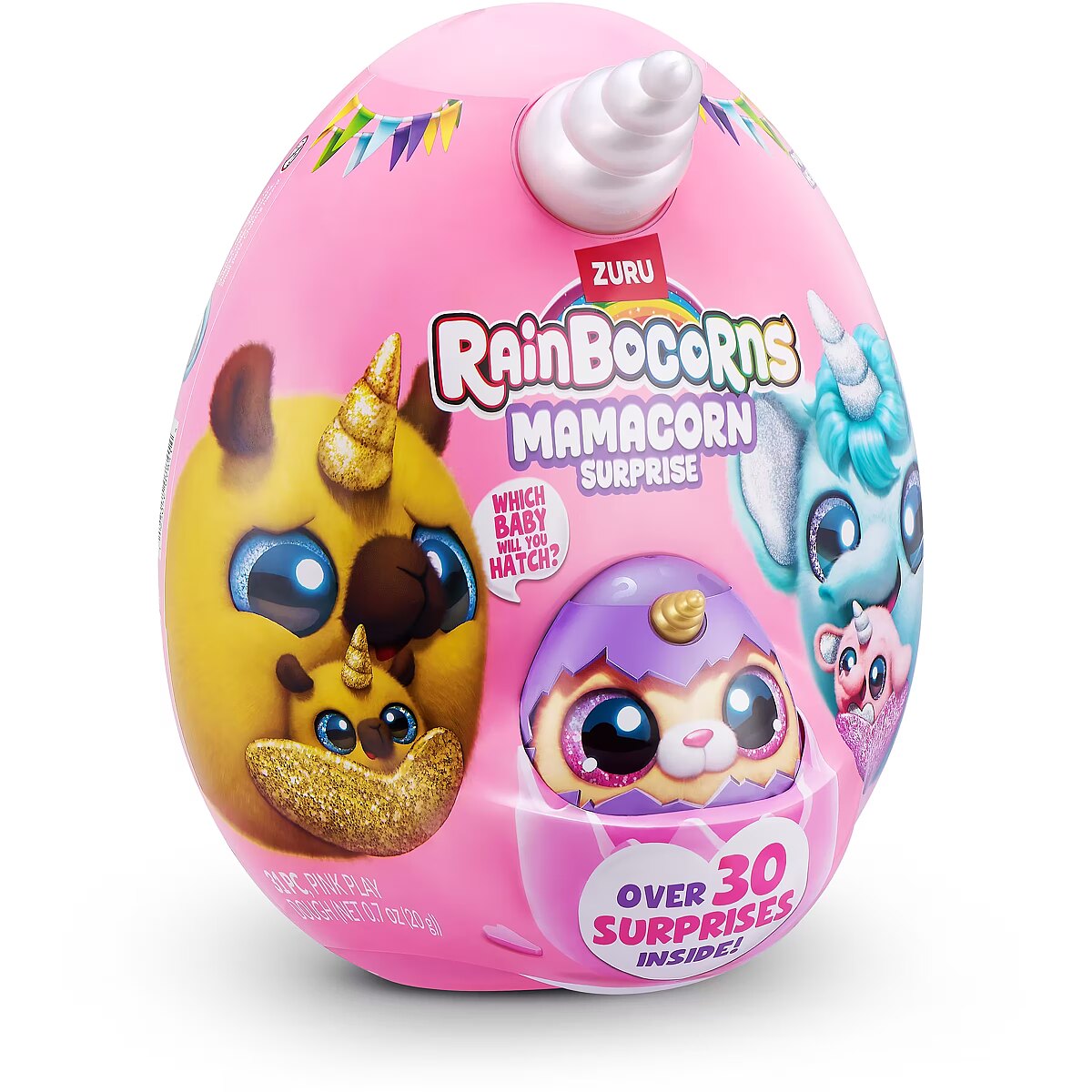LongDesc - Rainboville has a new mom! Meet Rainbocorns Mamacorn Surprise, a magical new addition to the Rainbocorns family! Hatch the colorful egg and uncover over 30 exciting surprises. Inside, you’ll find one of seven adorable Mamacorn plushes, along with a mystery baby to discover. Which one will you hatch? The excitement awaits! Crack open the egg to meet your new favorite plush, Mamacorn! Each Rainbocorns Mamacorn Surprise is filled with charm and ready to bring magic to your collection. Uncover a mystery baby Rainbocorn and add even more enchantment to your world. With over 30 surprises inside, including fun accessories, mini surprises, and a magic heart to reveal, Mamacorn is sure to delight. Collect all 7 Mamacorns to expand your magical realm and discover the magic of Rainboville!