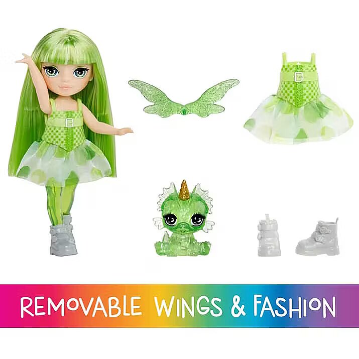 LongProductName - Rainbow High Littles Rainbow Fantasy Fairies + Pet – Emerald Green 5.5" Posable Small Doll & Fantasy Dragon Pet with interchangeable fairy wings, Kids Gift 4+