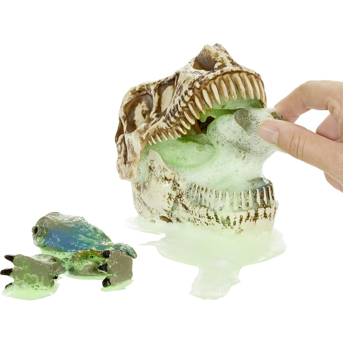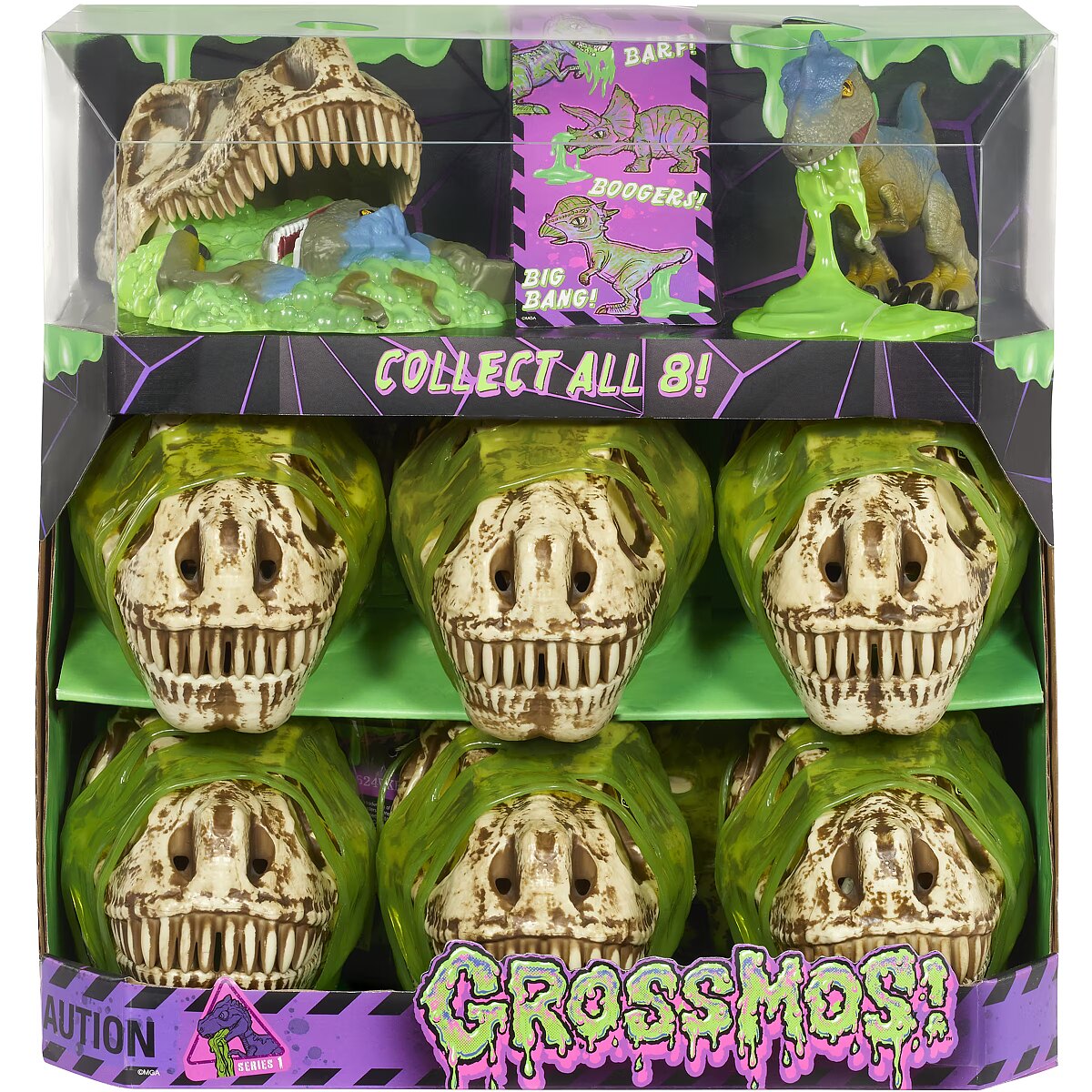 LongDesc - Add water and watch as the dino begins to foam at the mouth… ​Pry open the jaws and excavate bones to assemble a smaller dinosaur…​Once assembled feed them the toxic sludge and then squeeze the body to see where the green slime shoots from!The Ultimate Prehistoric Play Experience….​ GrossMos combines the thrill of unboxing with surprises! Fizz and slime combined with building your very own hidden dinosaur! Totally Gross! Interactive play stimulates imagination and creativity and provides a unique sensory experience for kids. Collect them all!