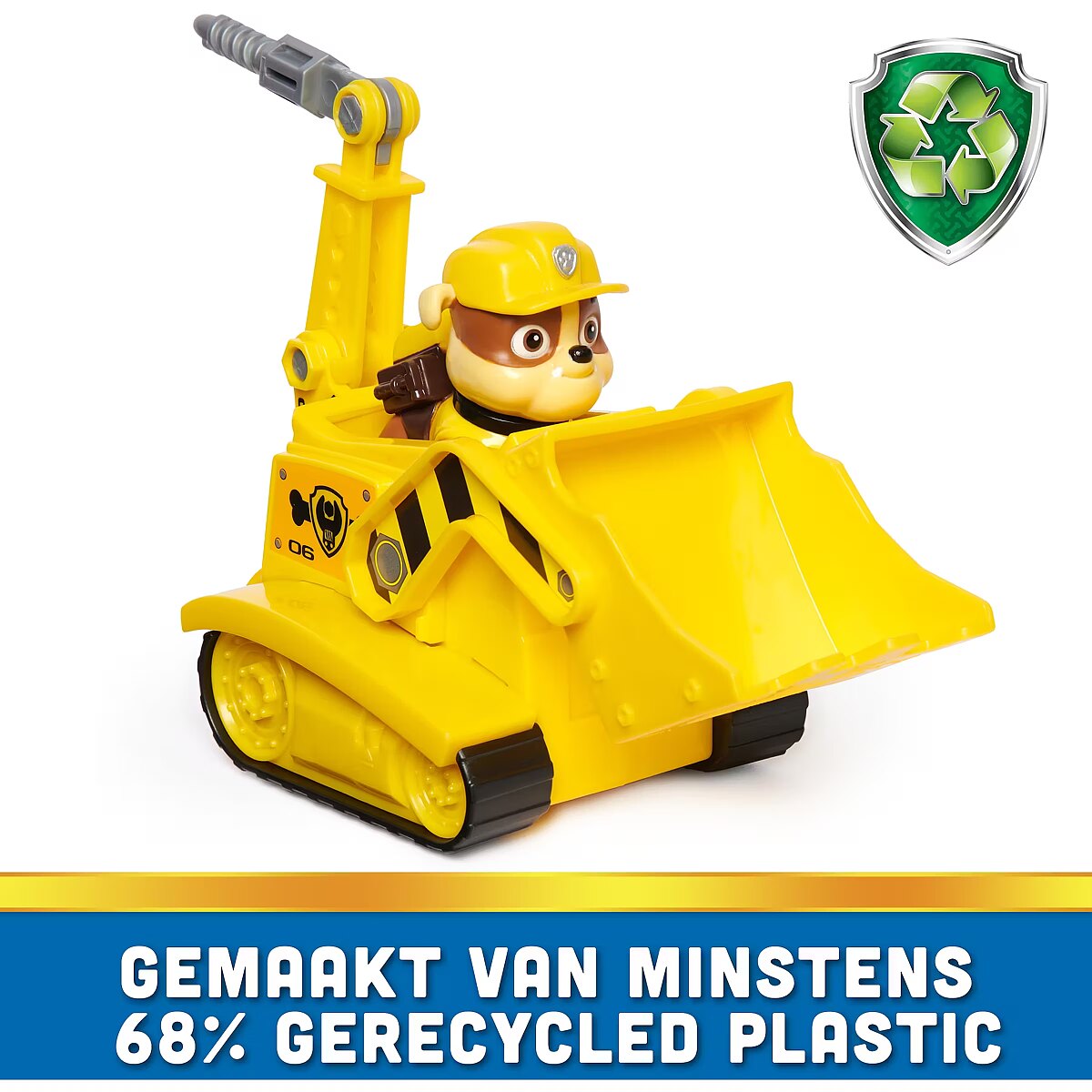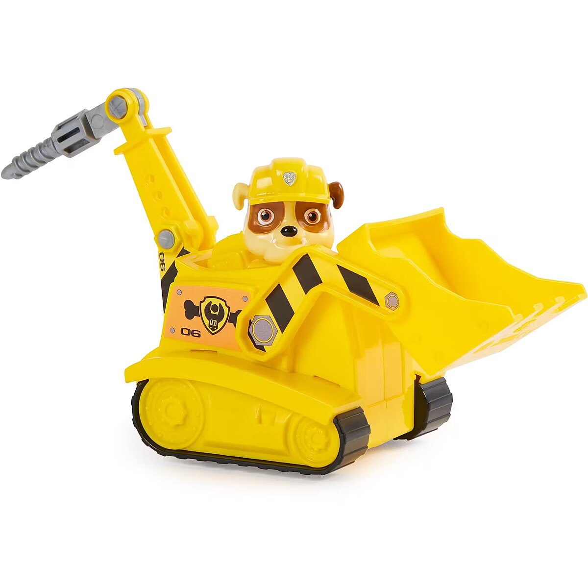 LongDesc - The PAW Patrol are on a roll in their rescue vehicles! Join Rubble on action-packed missions with his Bulldozer! When trouble strikes, place Rubble (toy figure included) into the driver’s seat and roll to the rescue with real working tracks, and a movable drill and scoop! With authentic detailing and realistic features, the PAW Patrol’s beloved construction expert and his vehicle bring all the excitement of PAW Patrol to life. Rubble and his vehicle are eco-consciously manufactured and are made from at least 68% recycled plastic! Team up with the rest of the pups and their rescue vehicles (each sold separately) and help save the day in Adventure Bay! For even more fun and exciting PAW Patrol series-inspired missions, collect all the PAW Patrol movie toys, like the awesome Aircraft Carrier HQ and all the special edition PAW patrol toys for girls and boys, like the Mighty Pups, Aqua Pups and Big Truck Pups toy figures and playsets (each sold separately). Enjoy endless PAWsome adventures with your favorite hero pup in their signature vehicle!Includes: 1 Vehicle, 1 Figure