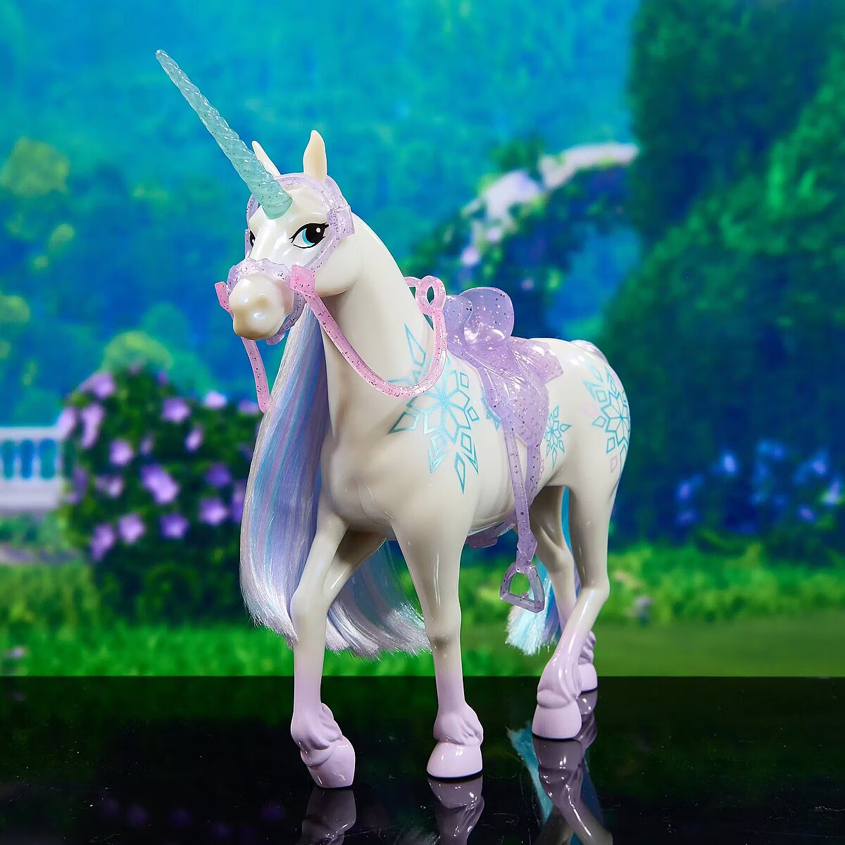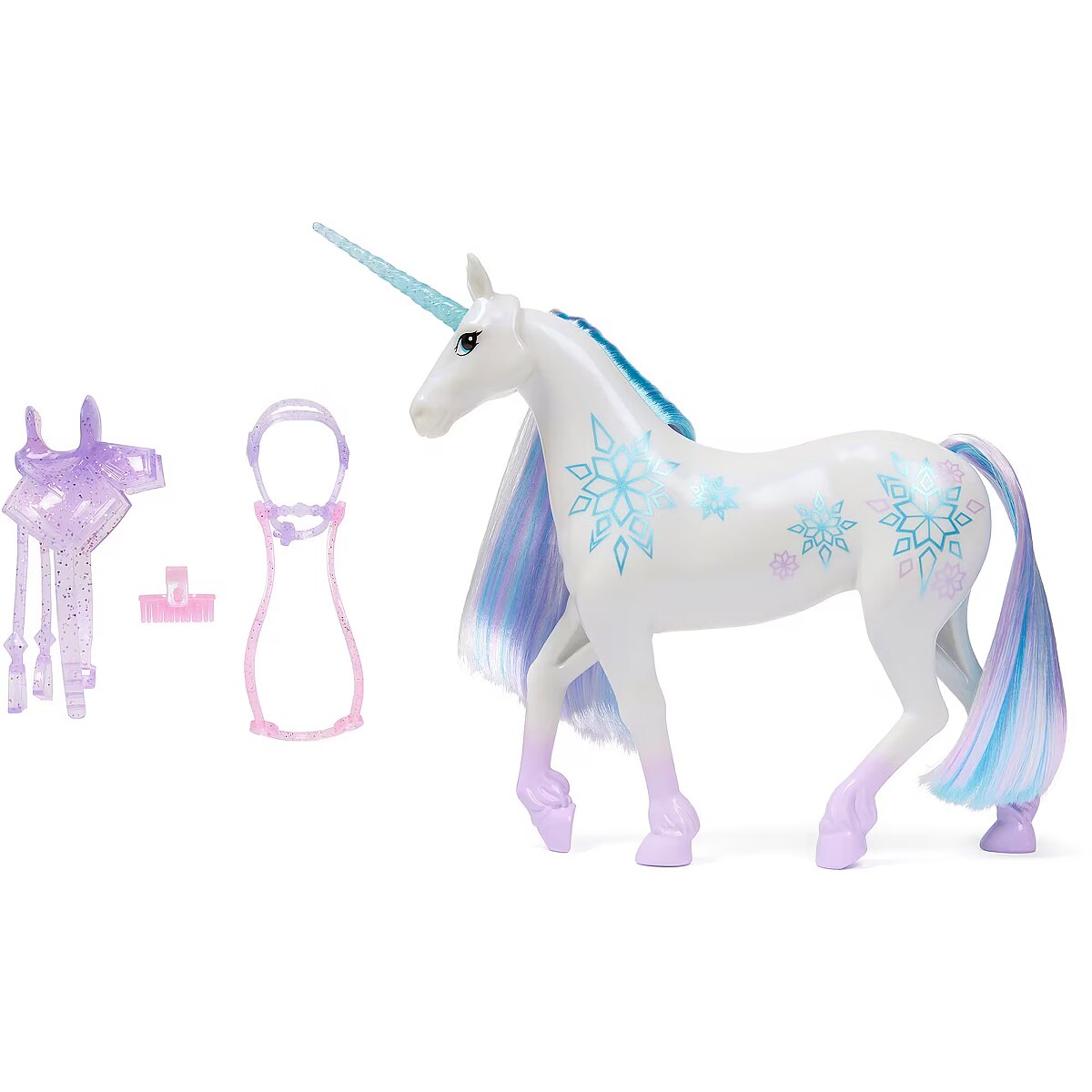 Name - Spinmaster Unicorn Academy - Unicorn Glacier (28 cm tall, with real mane and tail, removable bridle, saddle and brush)