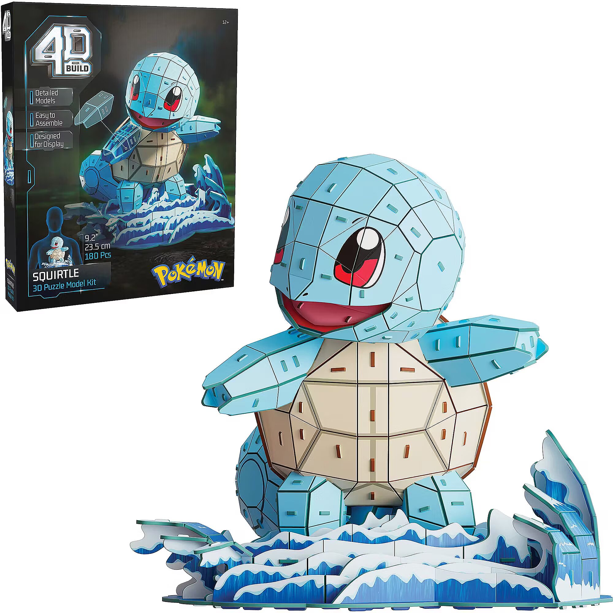 LongDesc - This 4D Build Squirtle model kit is beckoning to be displayed on your shelf. Embark on an adventure with our collection of Pokémon 3D puzzles. This Squirtle 3D puzzle from the nostalgic cartoon includes all the details of the original water Pokémon fans will love, including its defiant expression and curly tail. You get 16 sheets with 180 detailed punch-out pieces and easy-to-assemble instructions. No puzzle glue or tools required. The Squirtle 3D puzzle model kit measures 9.3"x10.1"x9.2" (23.7x25.6x23.5cm). Add a new Pokémon figure to your game room decor or as an educational toy for kids. Display your Squirtle puzzle model kit with pride. For young fans of Pokémon and Squirtle, this model kit will be an epic gift for any teen and adult fan of the animation. Shop 4D Build for more toy building sets and puzzles for ages 12 and up as birthday gifts for men, gifts for her, gifts for women, gifts for mom, and gifts for him. Create your own epic masterpiece at home with 4D Build.Includes: 16 EPS Foam 3D Puzzle Sheets, Instructions