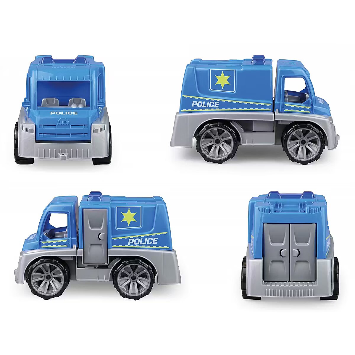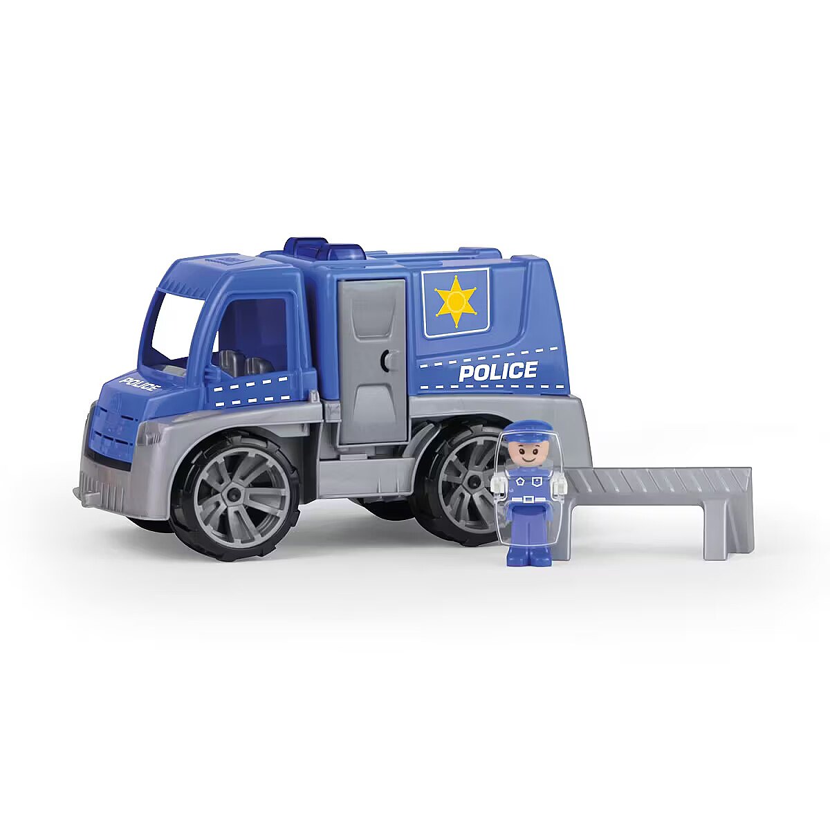 LongSummaryDescription - Lena TRUXX Police with accessories. Product type: Truck, Theme: Police, Recommended age (min): 2 yr(s), Material: Plastic, Product colour: Black, Blue, Grey