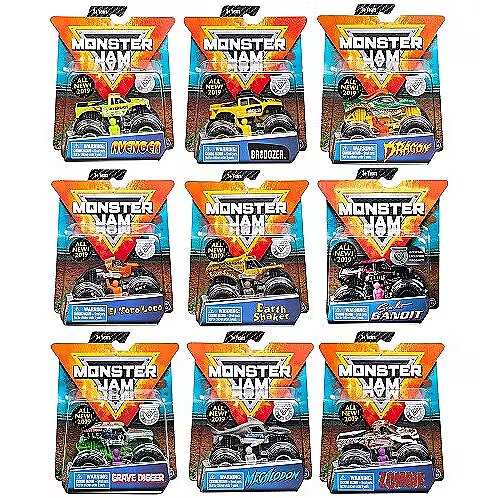 LongDesc - Introducing the all-new, official 1:64 scale die-cast Monster Jam monster truck! This lean, mean, Monster Jam machine features awesome graphics and details. With official BKT Tires, stylized chrome rims, and an authentic chassis, this monster truck embodies the style and swagger of its real-life counterpart! PLUS, this 1:64 scale truck comes complete with a driver molded into the driver’s seat and a detachable wheelie bar! Attach the bar to the front or the back of your truck and pop into wheelies or stoppies, just like you’ve seen in the live shows! This 1:64 scale die-cast Monster Jam truck is just like the real thing – only fun size! And now with more trucks to collect than ever before (each sold separately), it’s easy to keep track of your collection with the exclusive collector poster! Start building your Monster Jam collection today!Includes: 1 Monster Jam 1:64 Scale Monster Truck, 1 Wheelie Bar, 1 Collectible Poster