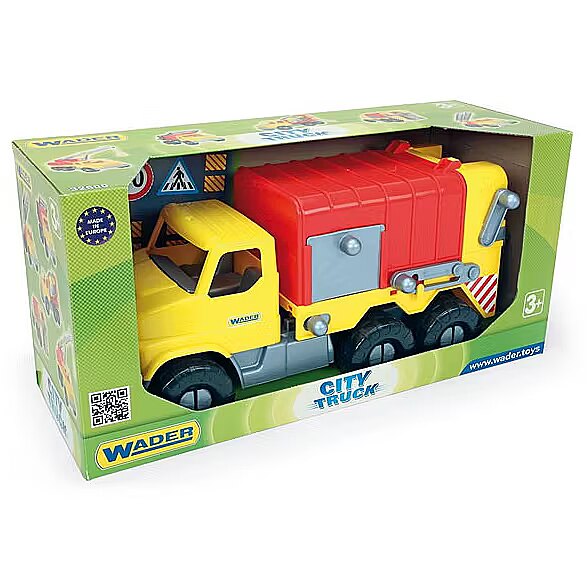 Description - The rubbish truck from the City Truck series is the perfect toy for all small fans of motor vehicles. It is characterised by realistic reproduction, solid workmanship, lightweight robust construction and easy control. The hitch on the front of the vehicle makes it possible to attach a string, a rope for pulling. The toy is equipped with a waste container, a movable lift for emptying the container and an opening side hatch. As a result, it will be a perfect addition to play activities related to keeping the environment clean and tidy, e.g. on a construction site. All elements are made of high-quality, durable and weather-resistant plastic, making the toy ideal for use at the beach, at home or in the sandbox. It can also be stored all year round, e.g. on the balcony or in the garden. Playing with mechanical vehicles such as the City Truck rubbish truck stimulates children's creativity and imagination, develops their manual and motor skills, precision of movement and eye-hand coordination. Learning about the construction and operation of the vehicle satisfies the natural curiosity of our kids, develops their cognitive senses and teaches them logical and cause-and-effect thinking.