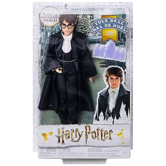 LongDesc - Harry Potter Yule Ball DollThis Harry Potter film-inspired doll brings Harry back to Hogwarts for an enchanted evening at the Yule Ball. This Harry Potter doll looks just like his character in Harry Potter and the Goblet of Fire and comes dressed in his Yule Ball look, featuring modern dress robes in all black over a crisp, white shirt and a matching bow tie. Authentic details, like Harry doll's iconic scar and glasses and a Yule Ball invitation accessory, add to the storytelling fun. With eleven "joints" -- in the neck, shoulders, hips, knees, elbows and wrists -- Harry Potter doll is ready for imaginative play and spellbinding poses! Harry Potter Yule Ball doll makes a great gift for Harry Potter fans 6 years old and up. Kids can collect Hermione Granger, Ron Weasley and Cho Chang Yule Ball dolls for more storytelling fun. Each sold separately, subject to availability. Colors and decorations may vary.