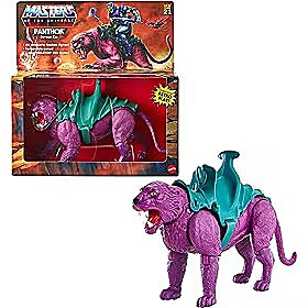 LongDesc - Masters of the Universe is back for admirers, collectors and a whole new generation of fans. It's time to get back into the battle to help He-Man save the universe from the evil Skeletor! Enter the ever-fierce Panthor. Panthor is a giant panther-like beast who's ferociously loyal to Skeletor. Its powerful purple body has 12 moveable joints — including legs, head, neck, and jaw — for power posing and imaginative battle scenes. Battle ready in deep green removable saddle and armor, this impressive cat arrives in beautifully rendered, vintage design packaging. This is a thrilling figure in the Origins line that honors classic Masters of the Universe traditions while incorporating exciting new design features for intense action play. By the power of Grayskull! Colors and decorations may vary.